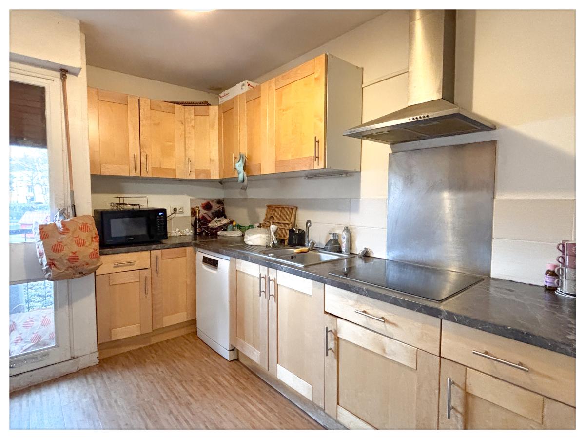 Une cuisine aménagée, en excellent état, équipée de plaques gaz, hotte et nombreux rangements