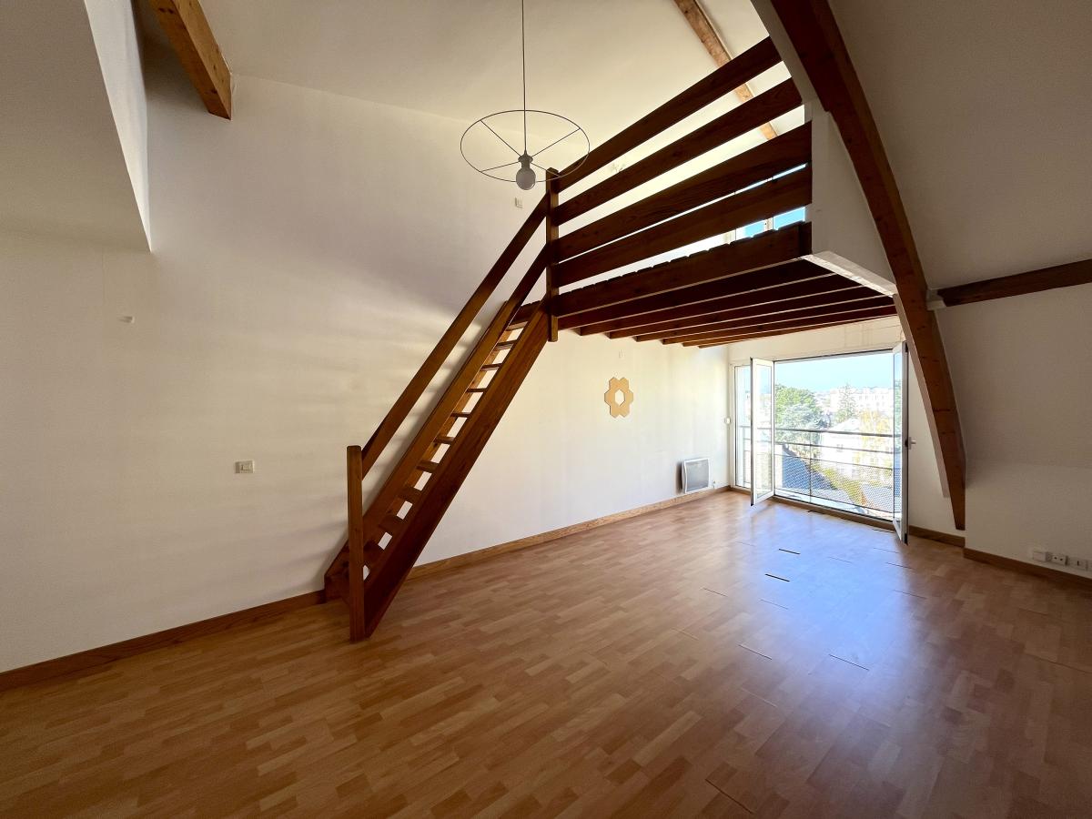 Cet appartement atypique se compose d'une entrée avec placard, un séjour spacieux avec coin cuisine et grande mezzanine, une chambre, une salle de bains, un WC séparé.