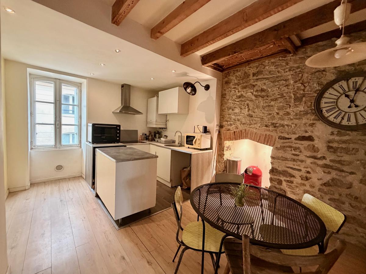 Idéalement situé en plein centre-ville de Vannes, à deux pas de toutes les commodités, cet appartement traversant séduira les amoureux de la pierre et de l’authenticité.