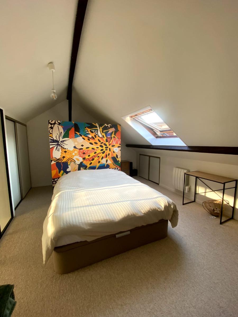 A l'étage une chambre avec verrière et dressing en compléments des placards aménagés en sous pente.