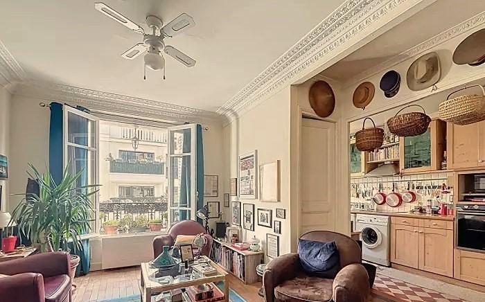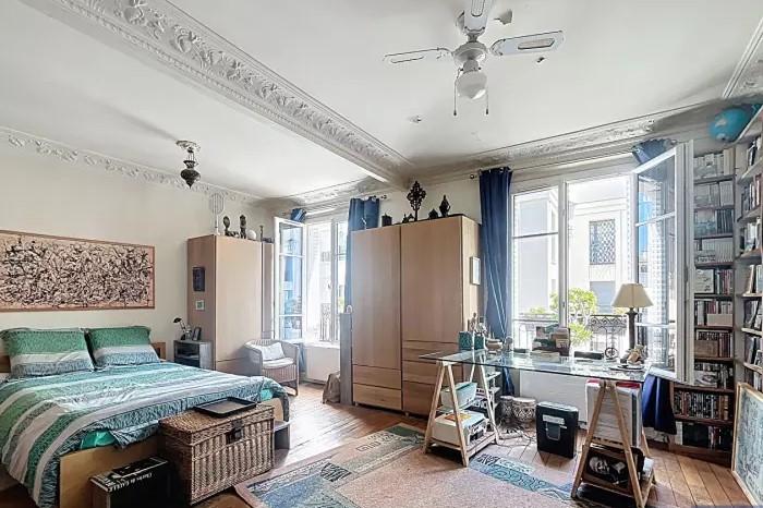 Dans un Bel Immeuble ancien 1930 savoir : Petite Entrée, Séjour avec Cuisine aménagée ouverte, 1 grande Chambre avec Bureau (Possible 2 Chambres),