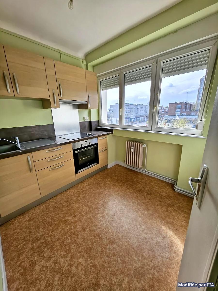 Entrée, séjour, cuisine équipée, salle de bains, w-c, une chambre