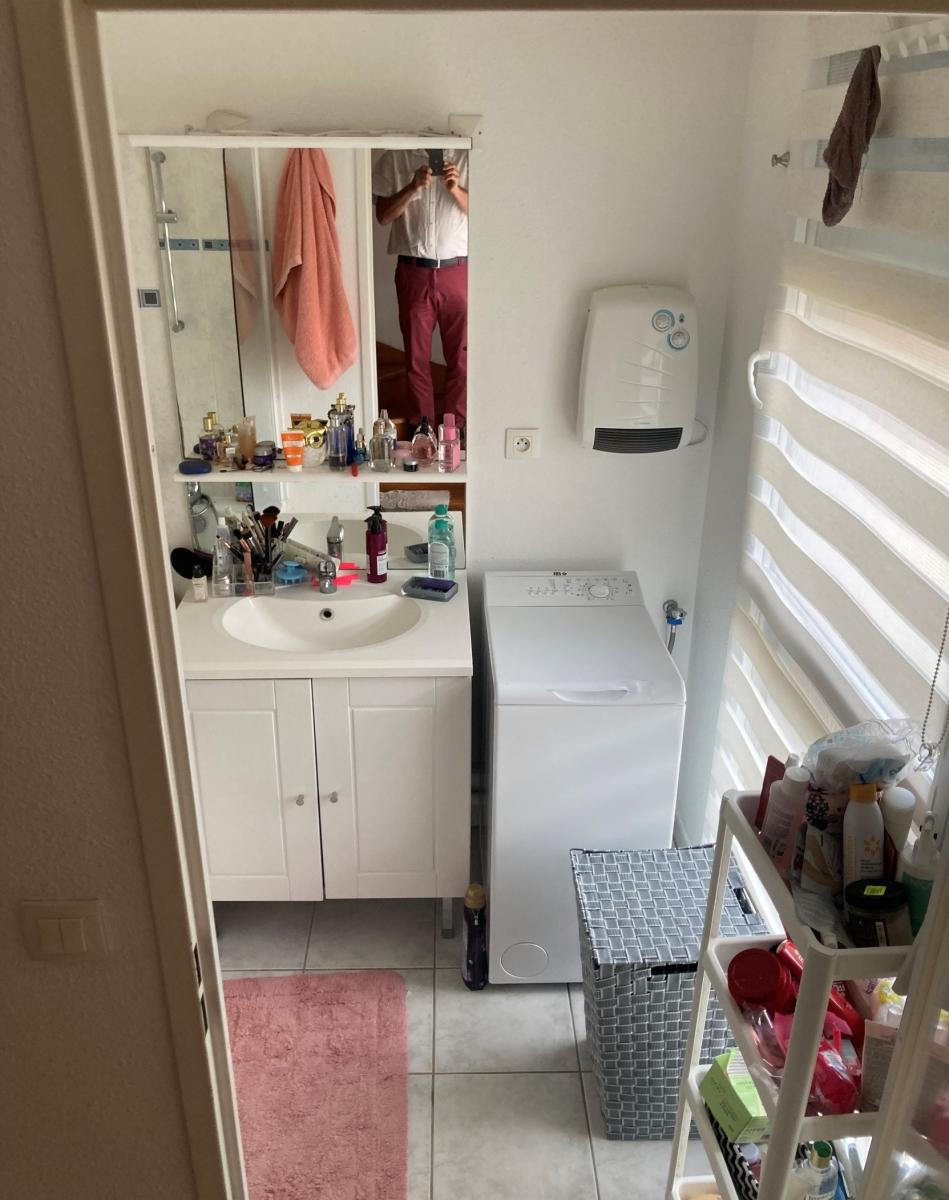 RDC : entrée (10 m²), chambre (12.50 m²)salle de bain (3,50 m²), WC séparés (1m²).