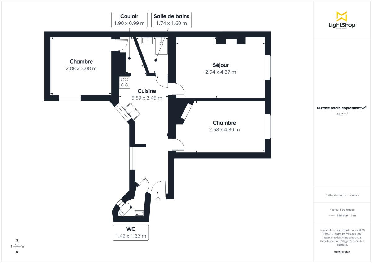 Pièces : 3 pièces / 2 chambres