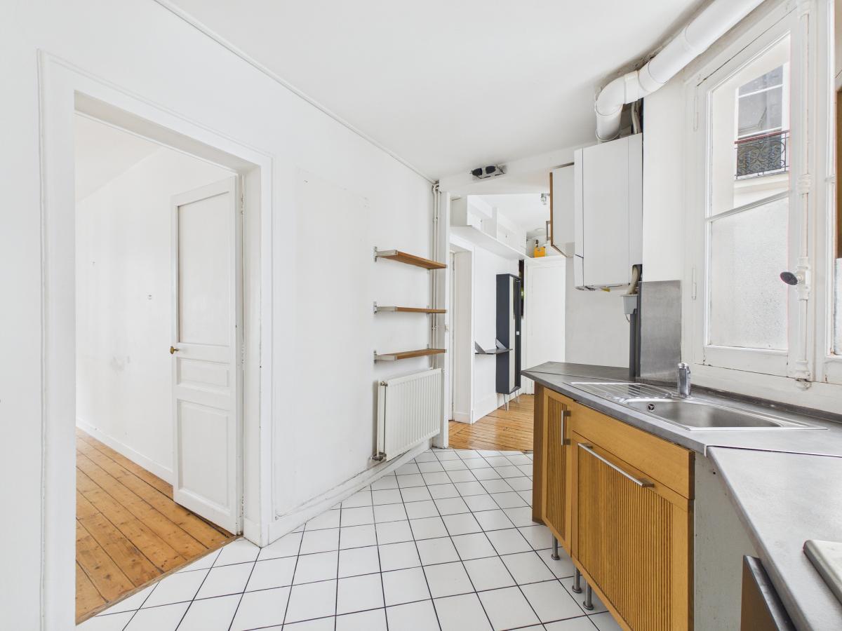 Métro Charonne dans une rue Calme, au 2ème étage sans ascenseur un appartement de trois pièces principales de 50m² composé d'une entrée, une cuisine ouverte, un séjour, deux chambres, une salle douches et un wc.
