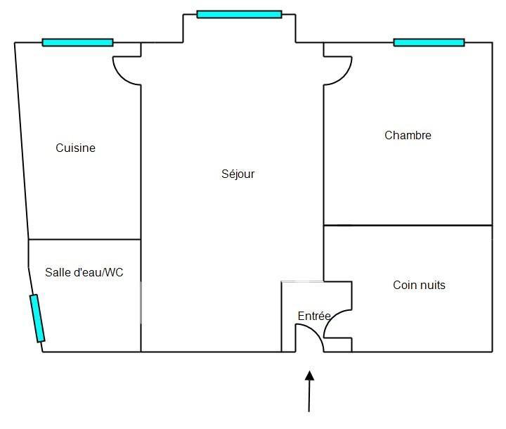 Il comprend une entrée desservant une pièce de vie aux volumes confortables, bénéficiant d’un bow-window orienté plein sud, une cuisine indépendante intégralement aménagée et équipée, une chambre principale, un espace bureau pouvant être utilisé comme chambre complémentaire, ainsi qu’une salle d’eau avec toilettes.