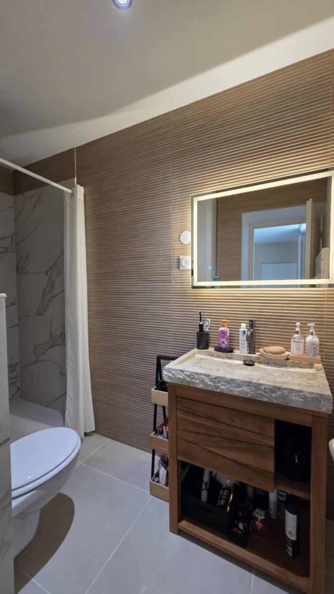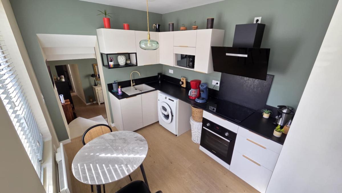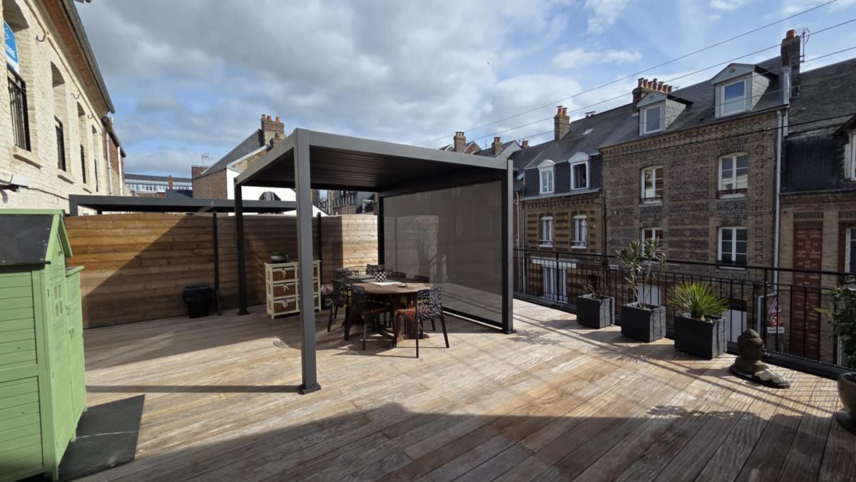 Appartement avec terrasse en exposition SUD, de 52.27 M² superficie loi carrez, offrant pièce de vie, cuisine aménagée et équipée avec accès direct sur la terrasse, deux chambres, salle d'eau avec douche italienne et wc.