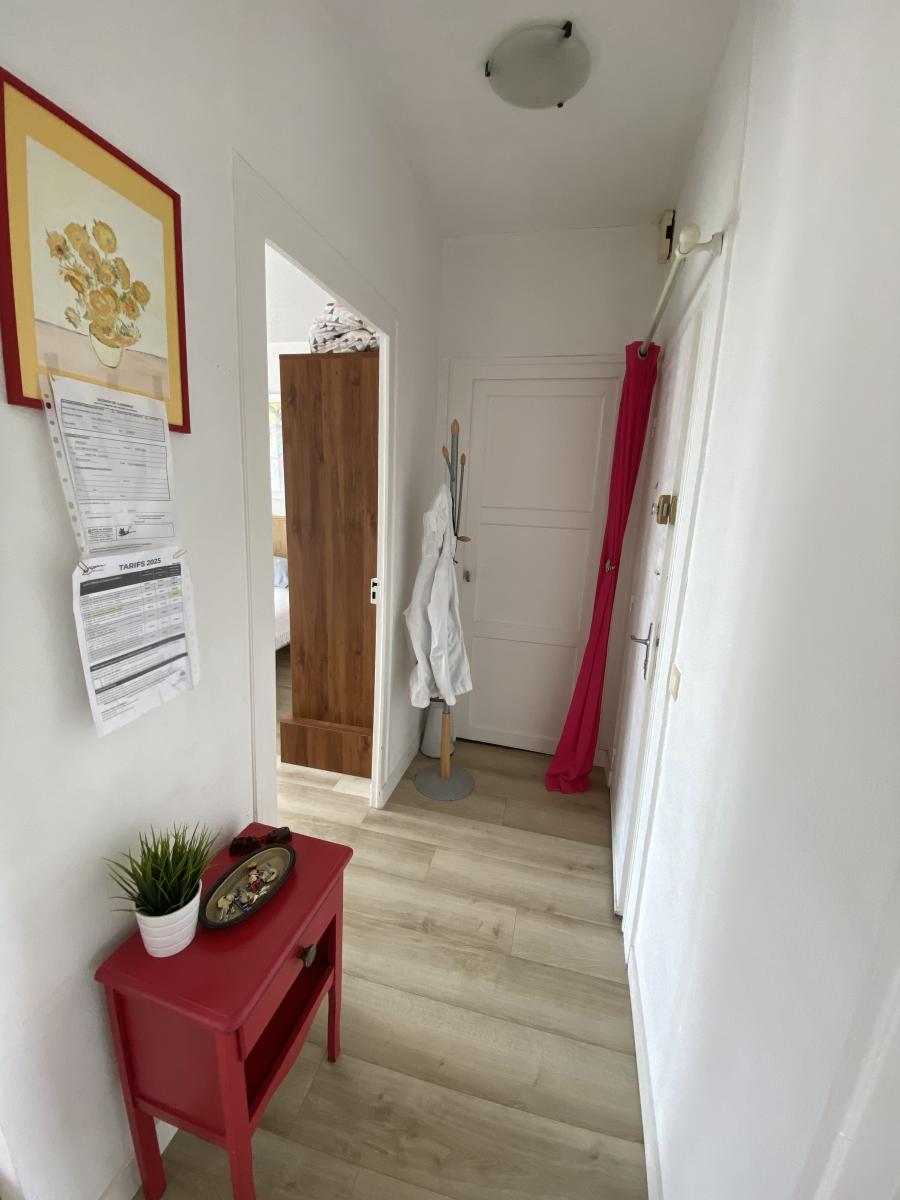 Idéalement situé à deux pas de la plage et des commerces (Avenue de Gaulle), cet appartement de type T3 (53m²)se trouve au 2ᵉ étage d’une petite copropriété (4 lots principaux) calme avec un syndic bénévole.