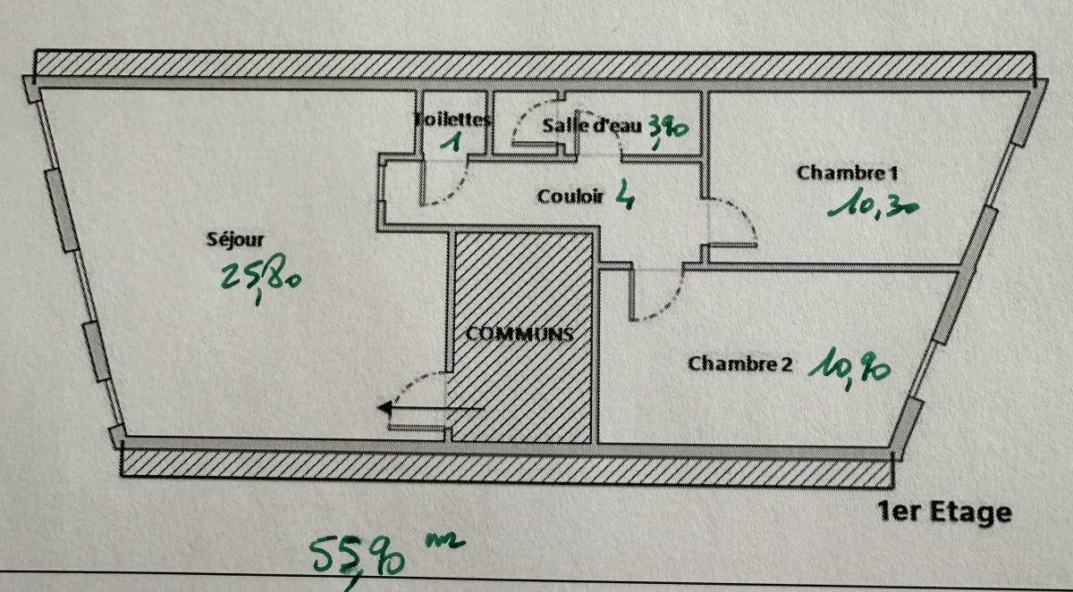 L'étude Napoléon Tourlaville vous propose à CHERBOURG quartier du Voeu, appartement loué au 1er étage de 55m².