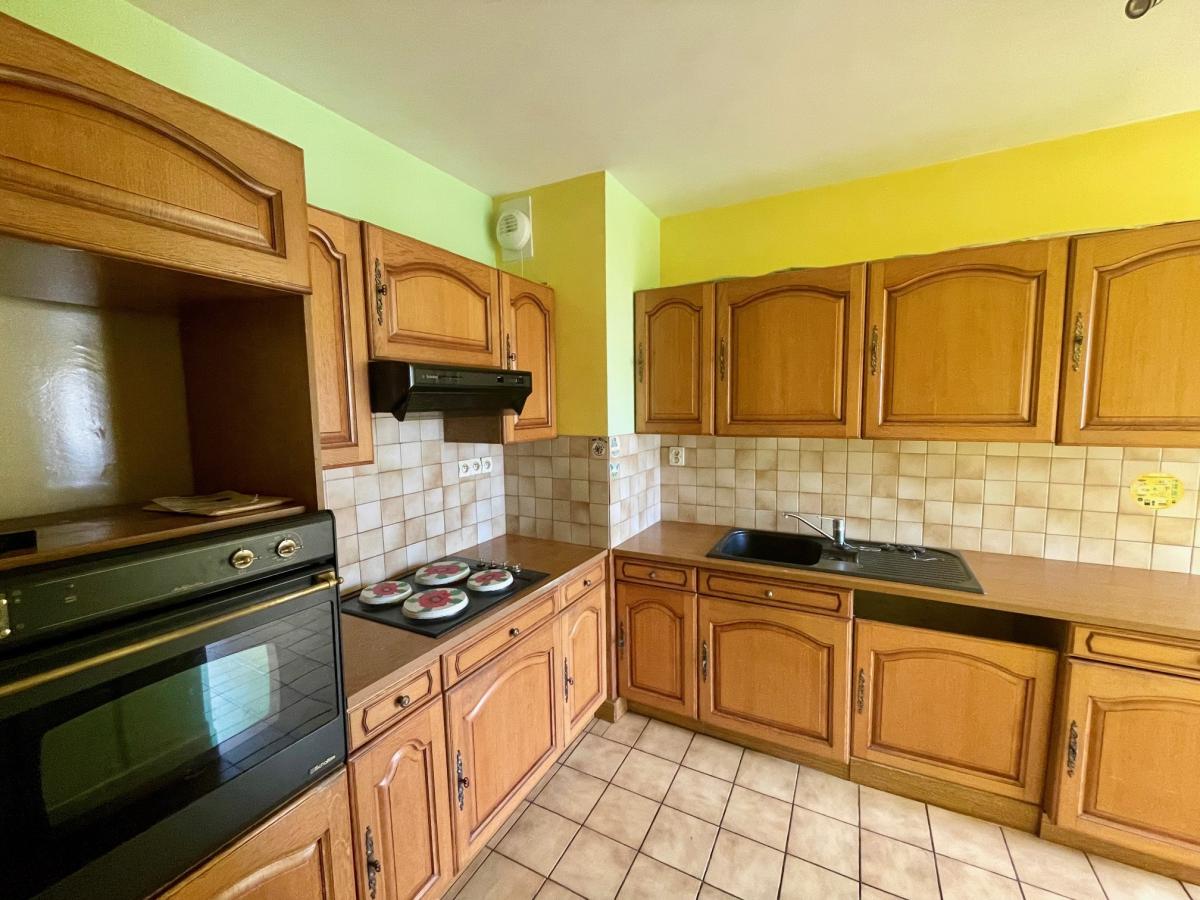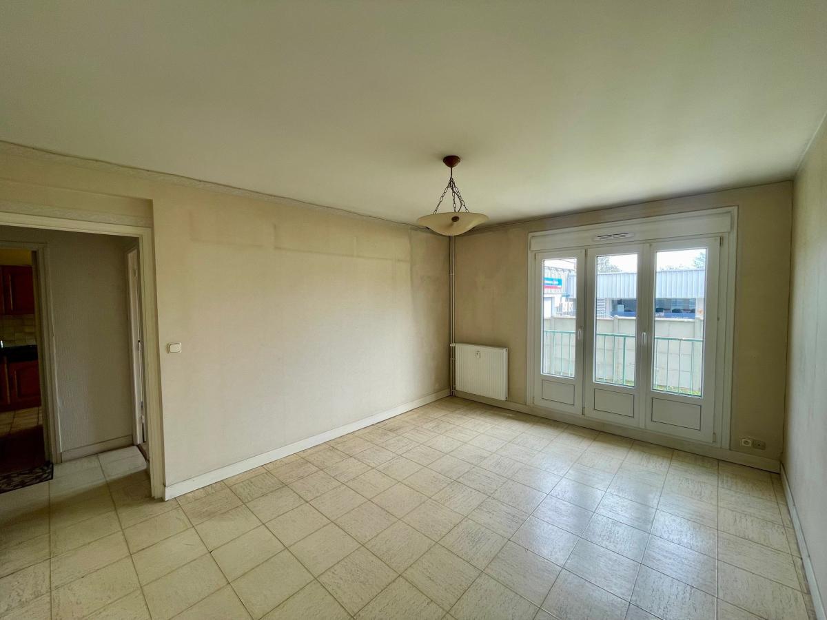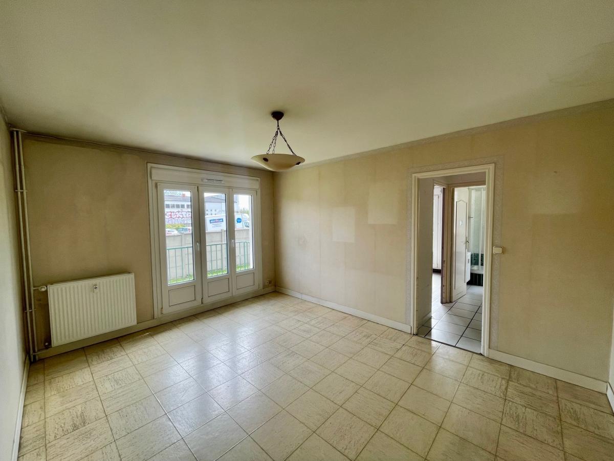 Dans une copropriété, appartement type 3 composé d'une entrée avec placard, cuisine aménagée, séjour avec petit balcon, deux chambres, salles d'eau, wc.