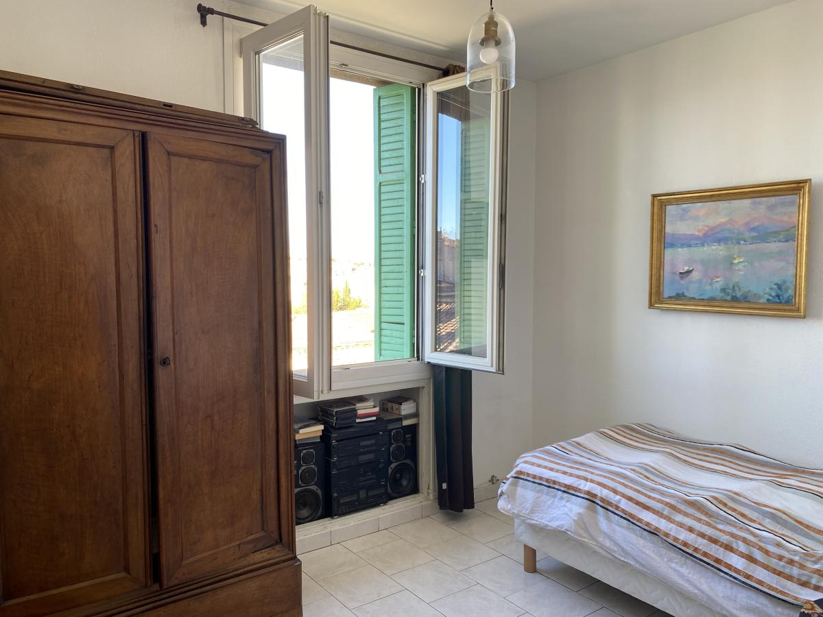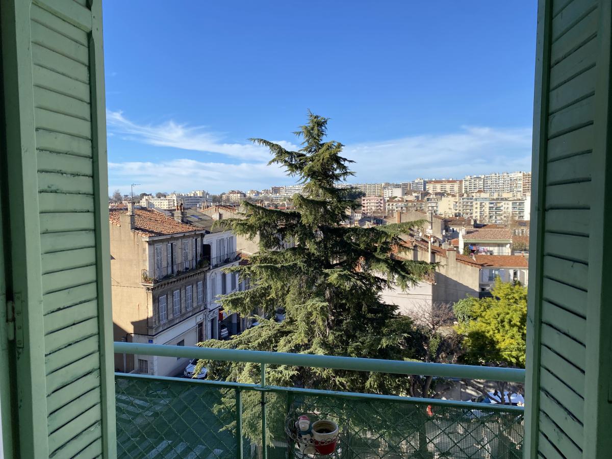 57, bd de Roux 13004 - Appartement T3, 60 m² env., composé d'une entrée, séjour climatisé double exposition ouvrant sur balcons, cuisine séparée, deux chambres dont une avec placards intégrés et balcon, salle d'eau avec toilettes. Au 3ème et dernier étage sans ascenseur, ce bien est en bon état général, très lumineux, avec vue panoramique sans vis à vis.