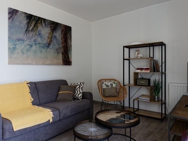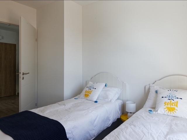 Il comprend un séjour-salon spacieux avec cuisine américaine, deux chambres confortables, une salle d’eau, un WC et une entrée. Son atout majeur ? Une magnifique terrasse exposée plein sud, parfaite pour admirer la mer et profiter de moments de détente.