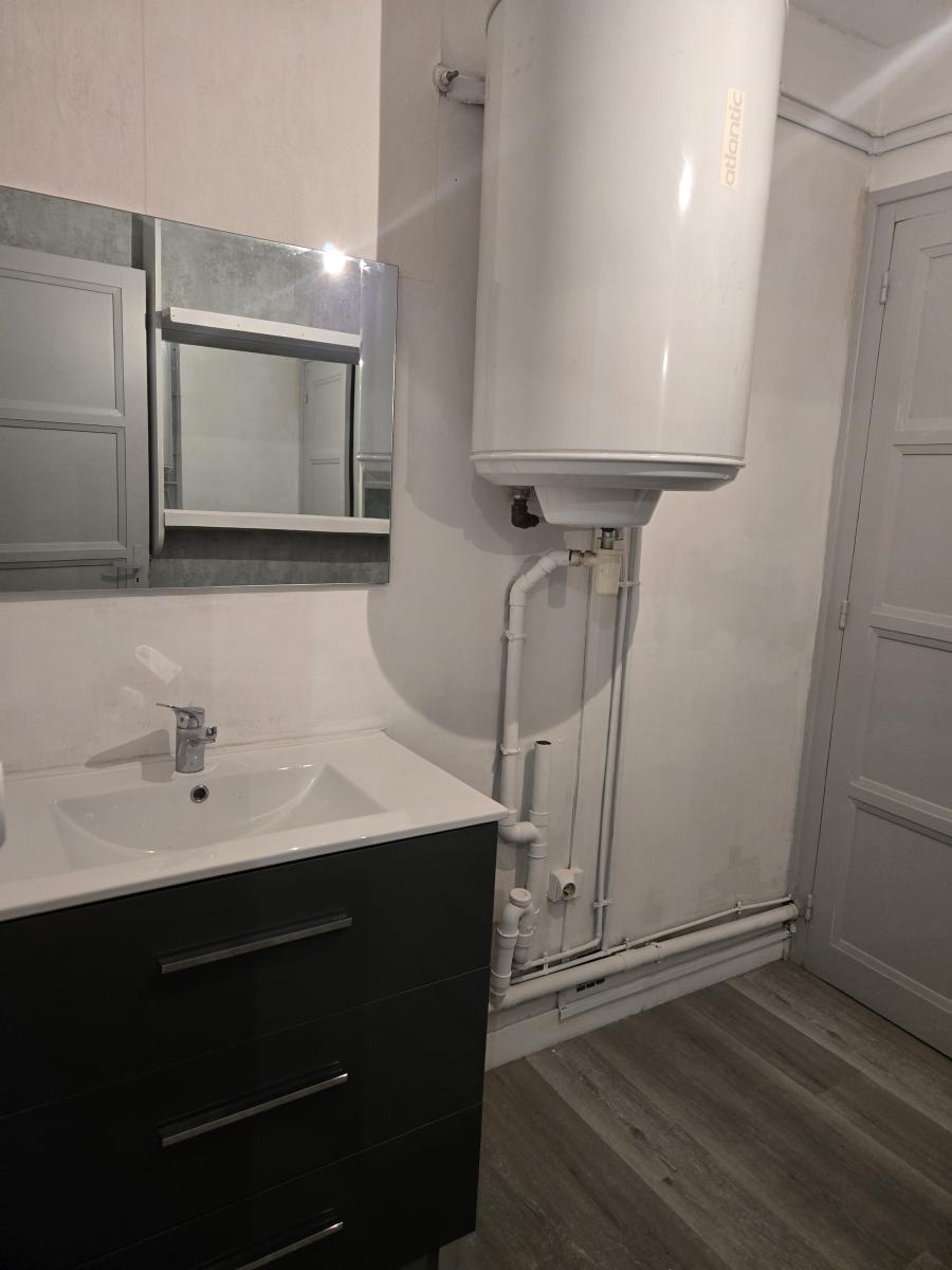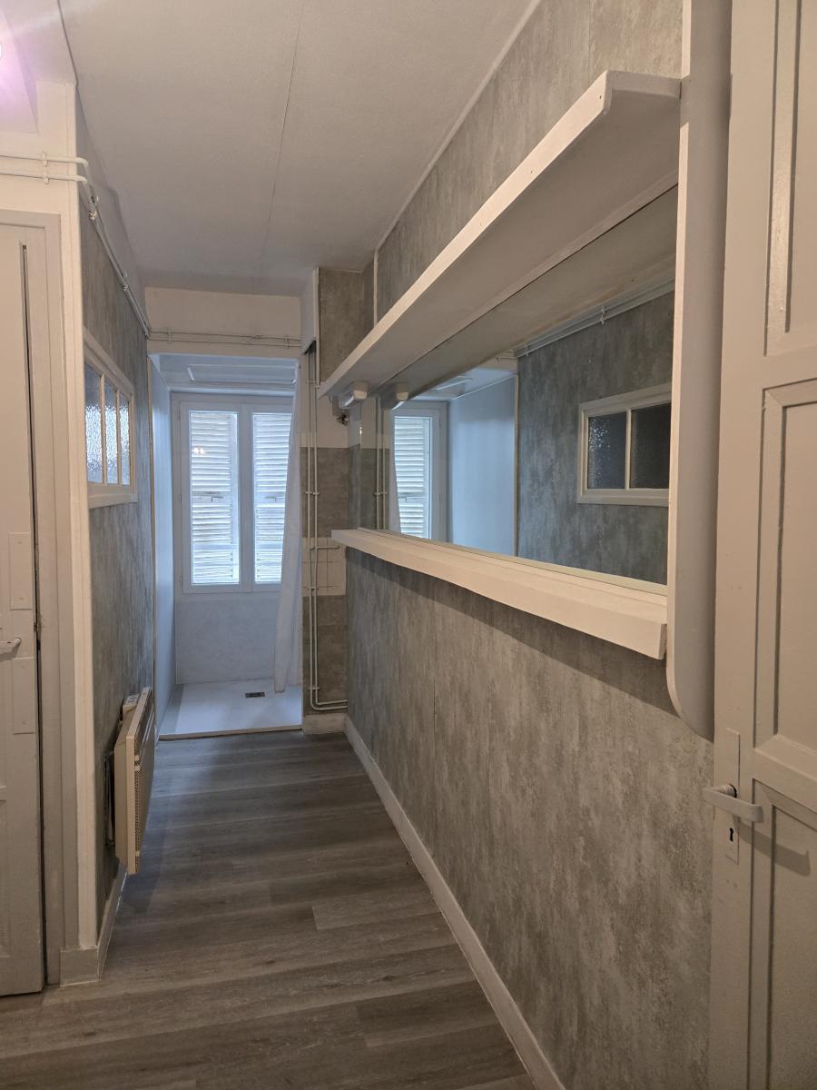 il se compose d'un couloir avec placards, une salle d'eau avec wc, deux chambres, une pièce de vie/cuisine ouverte.