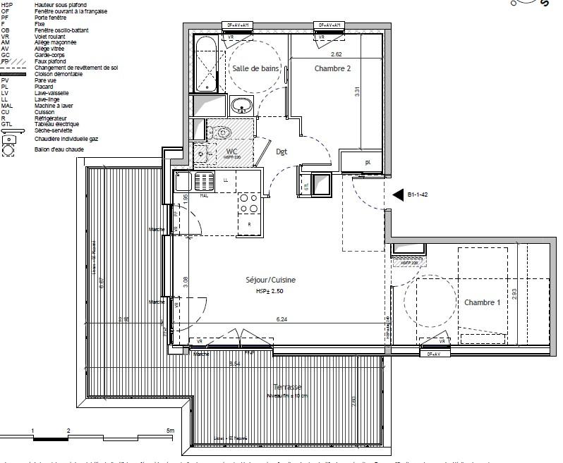 NANTES – Chalâtres. Dans immeuble de 2021, au 4ᵉ et dernier avec asc,T3 de 62,40 m² avec terrasse