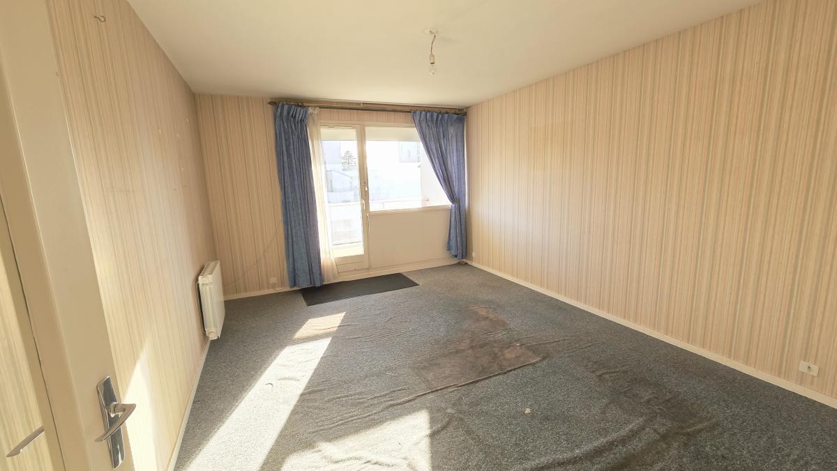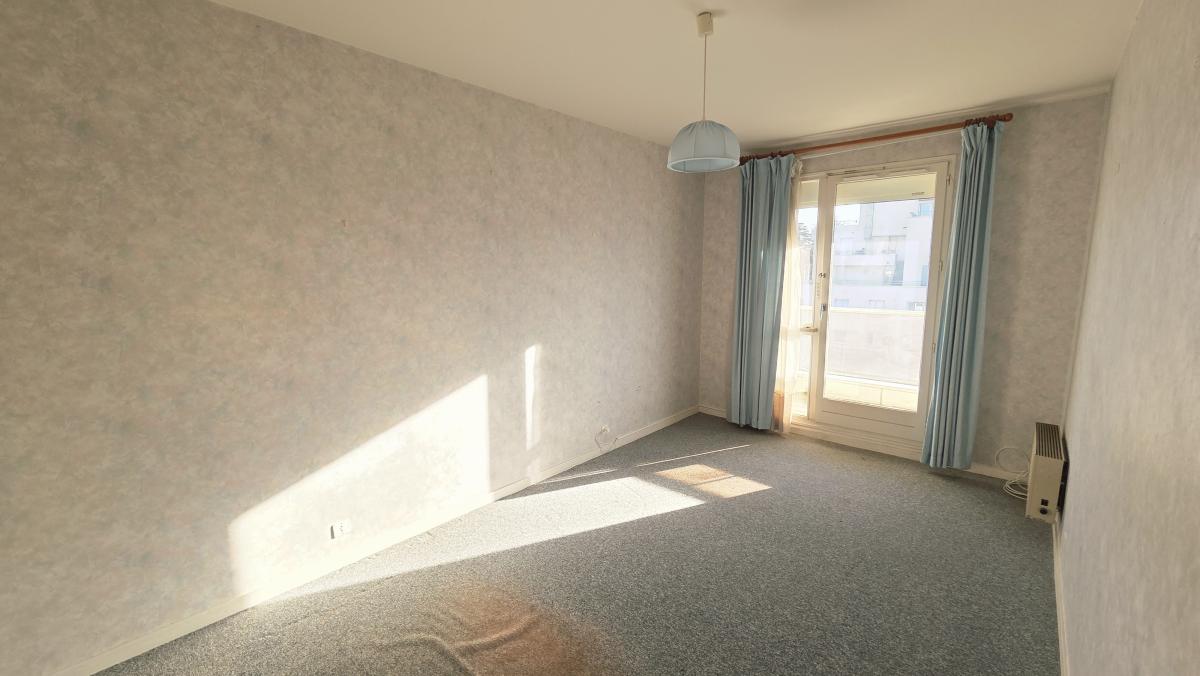 Un appartement de type 3 au 5ème étage d'un immeuble soumis à la copropriété comprenant entrée, séjour, deux chambres, cuisine indépendante avec cellier, WC, salle d'eau.