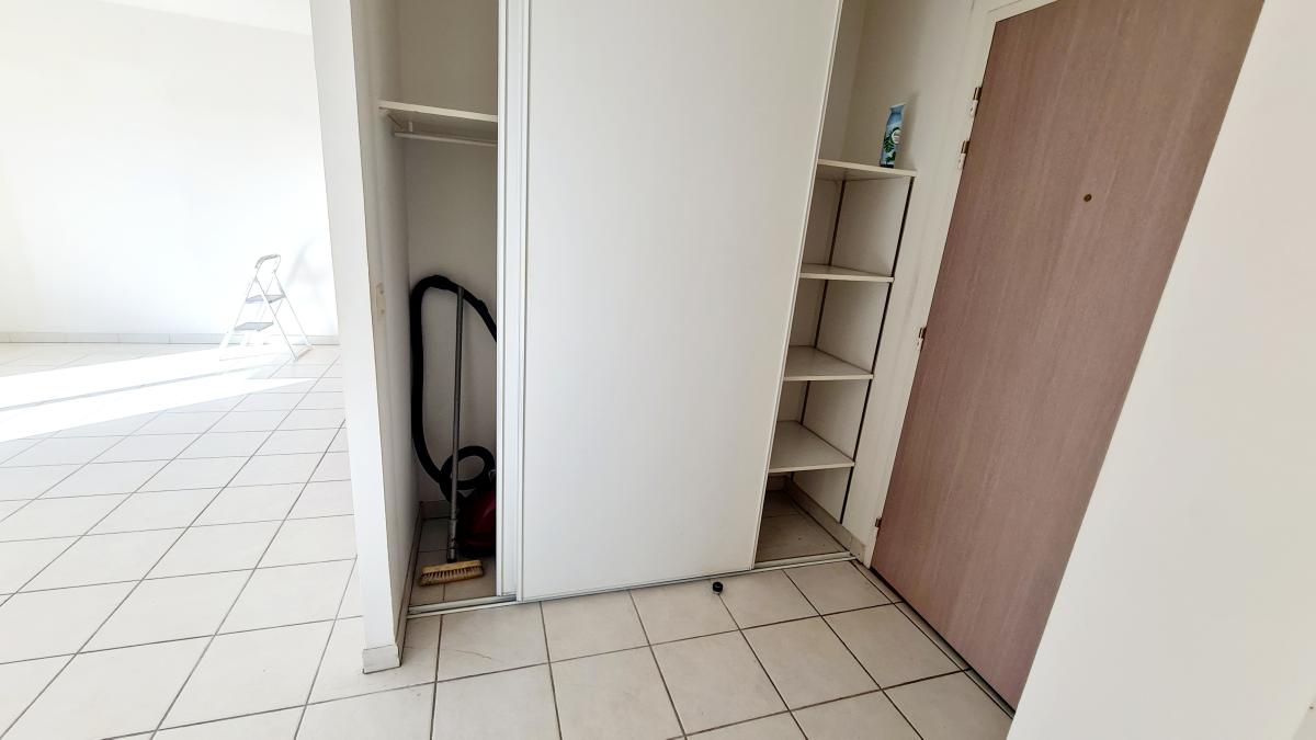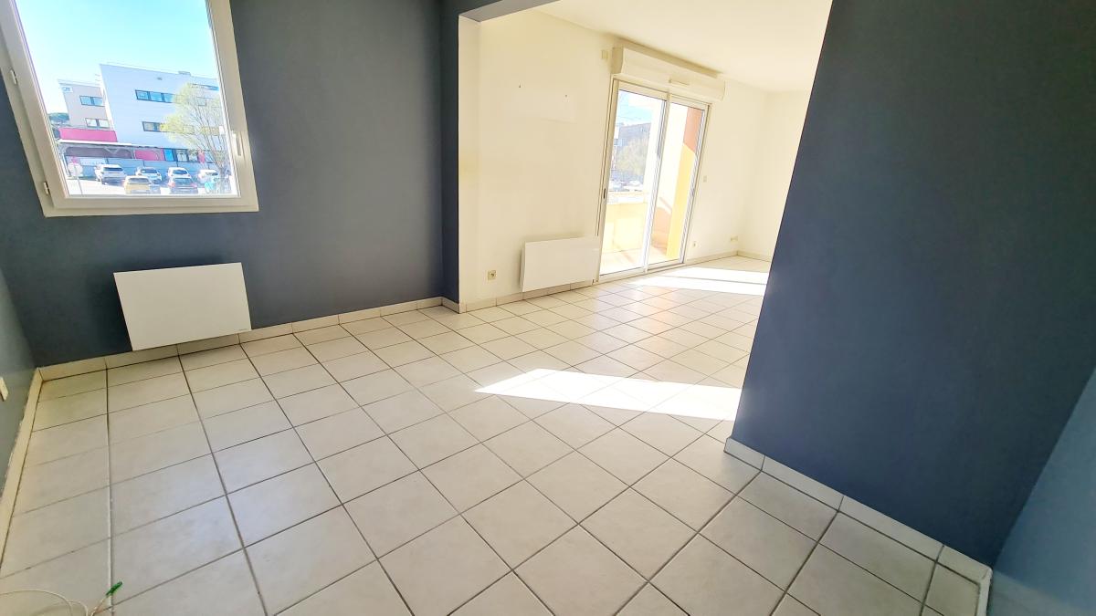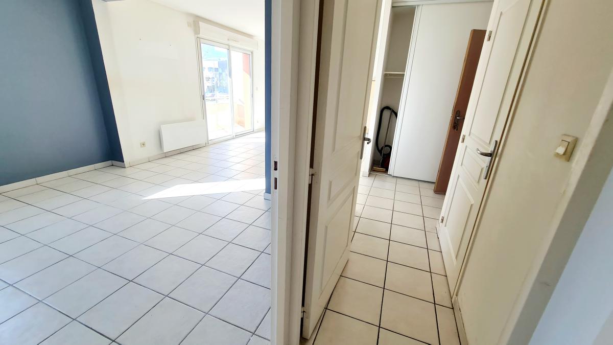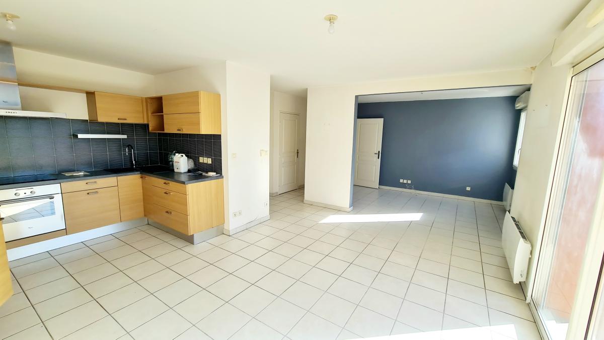 L'appartement est composée d'une entrée donnant sur la pièce principale de 25 m² avec une cuisine ouverte, accès au balcon par le salon. Une chambre de 9.70 m² est aujourd'hui ouverte sur le salon mais possibilité de refermer facilement pour avoir 2 chambres. un dégagement avec un WC séparé, une salle de bain de 4.03 m², un rangement / dressing de 3.71 m², une 2 nde chambre de 12.49 m².