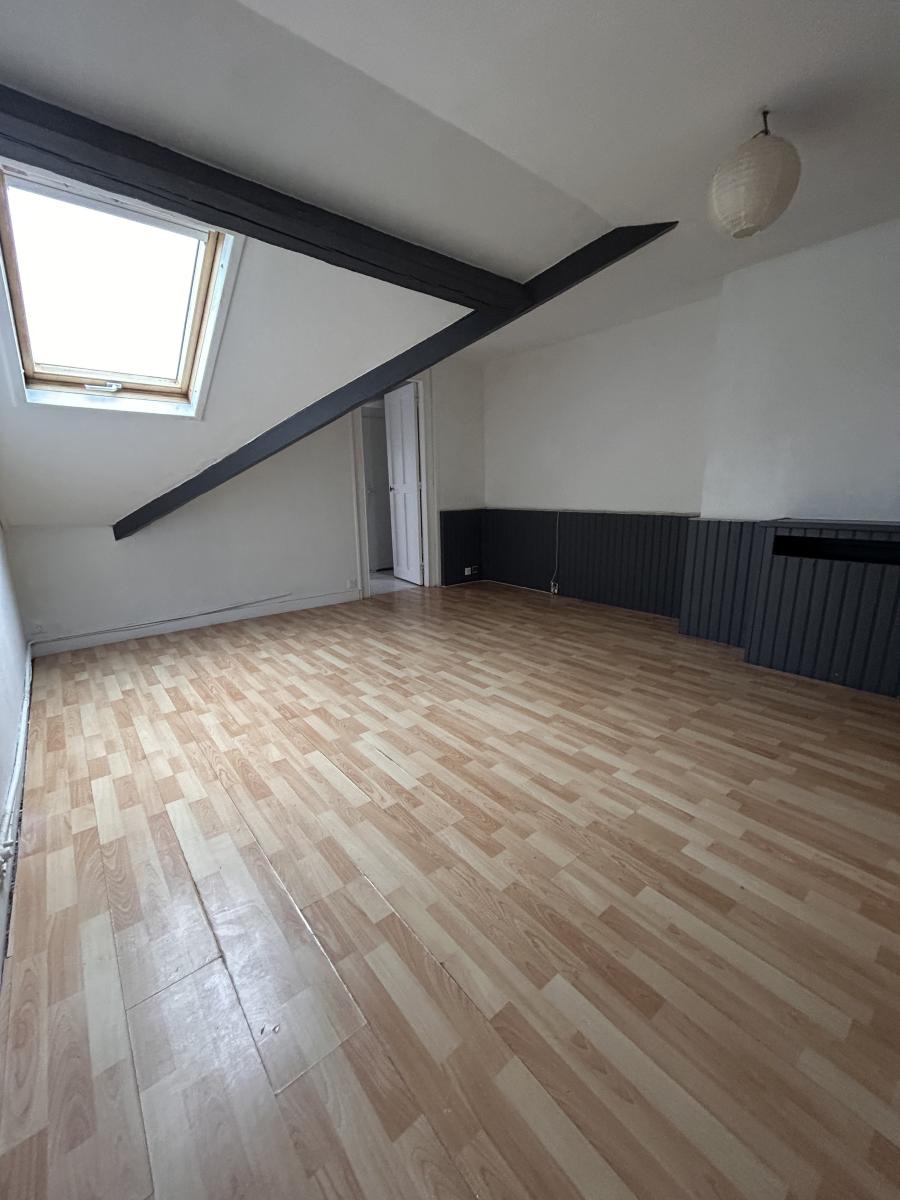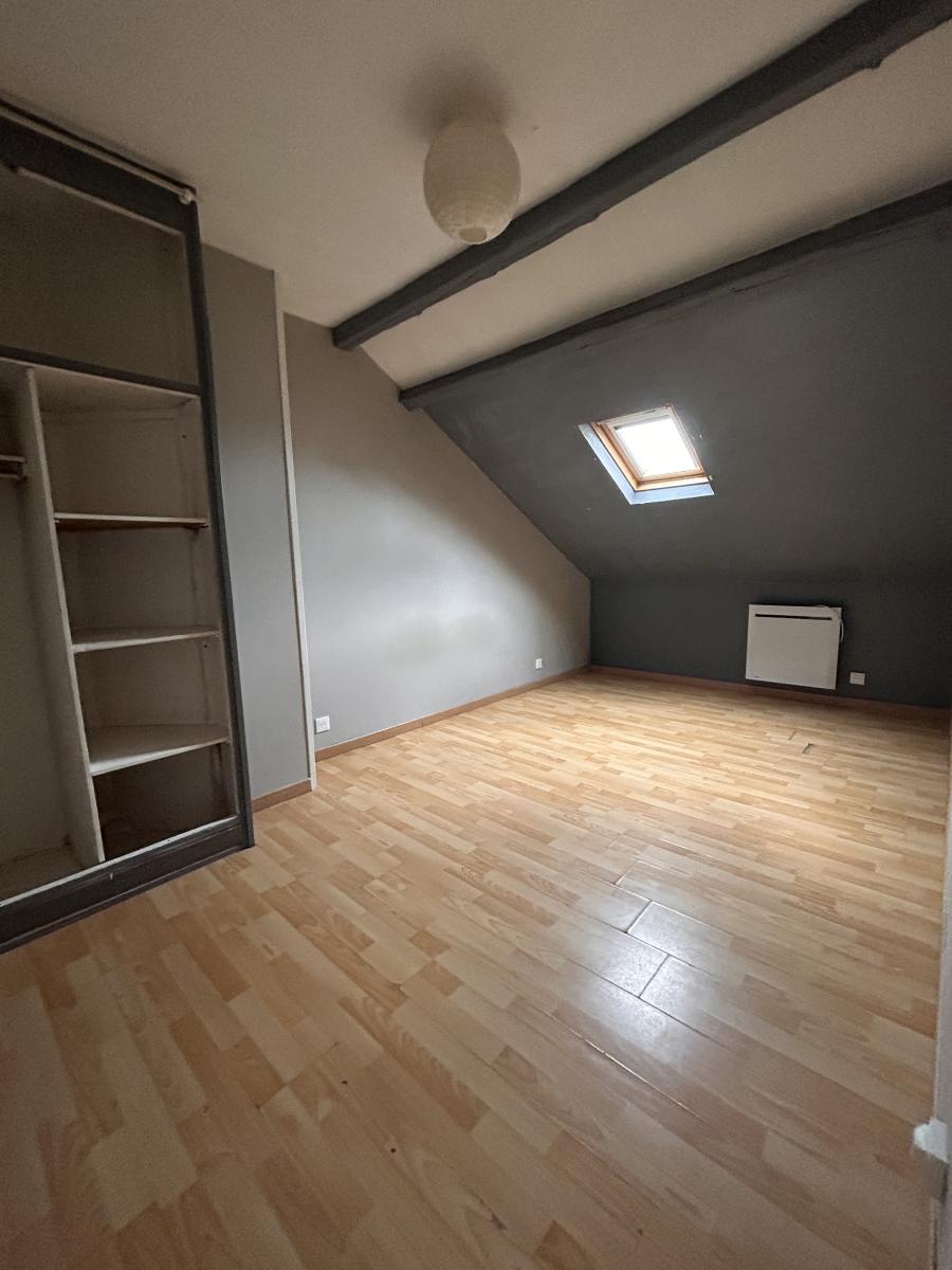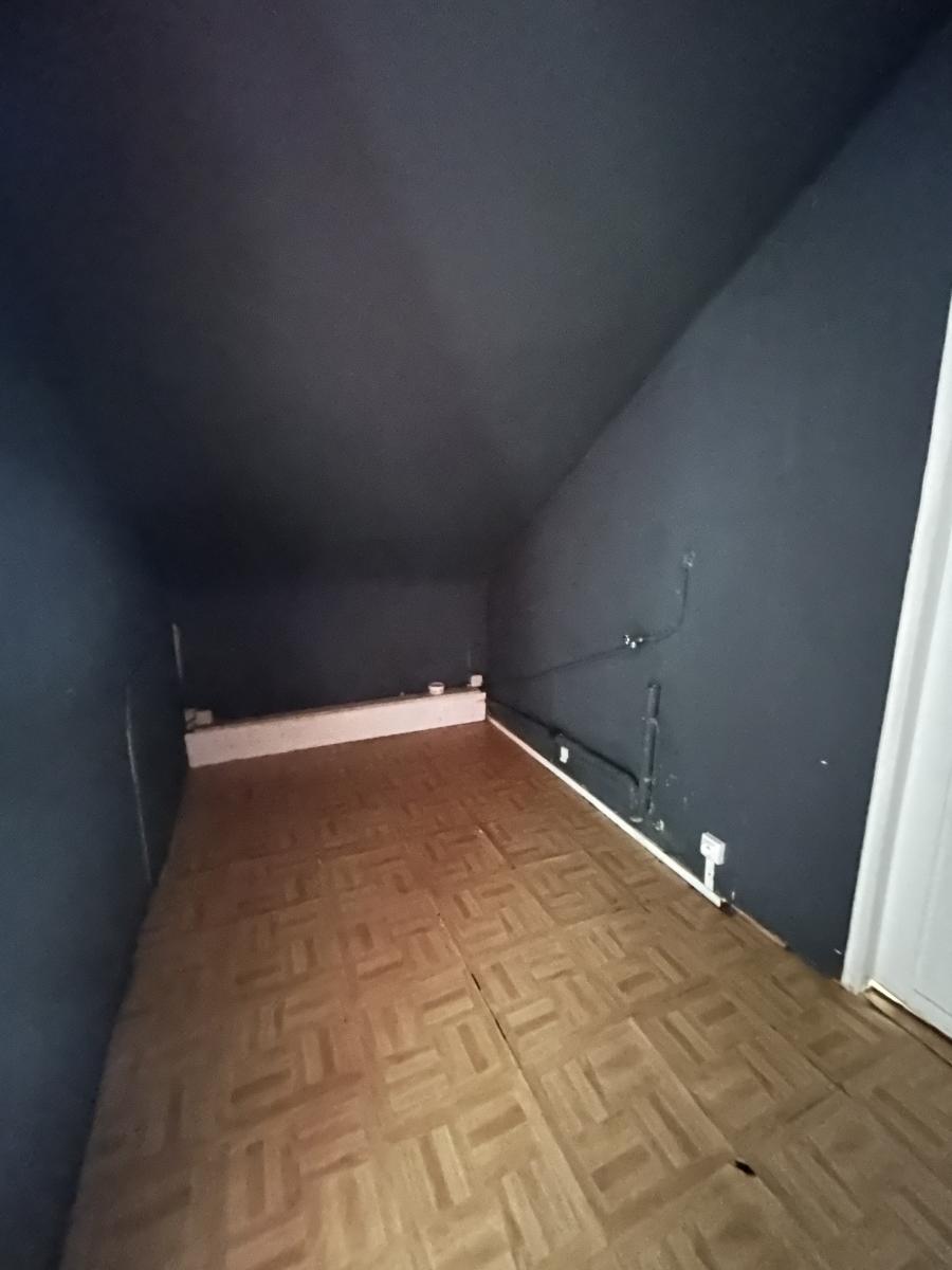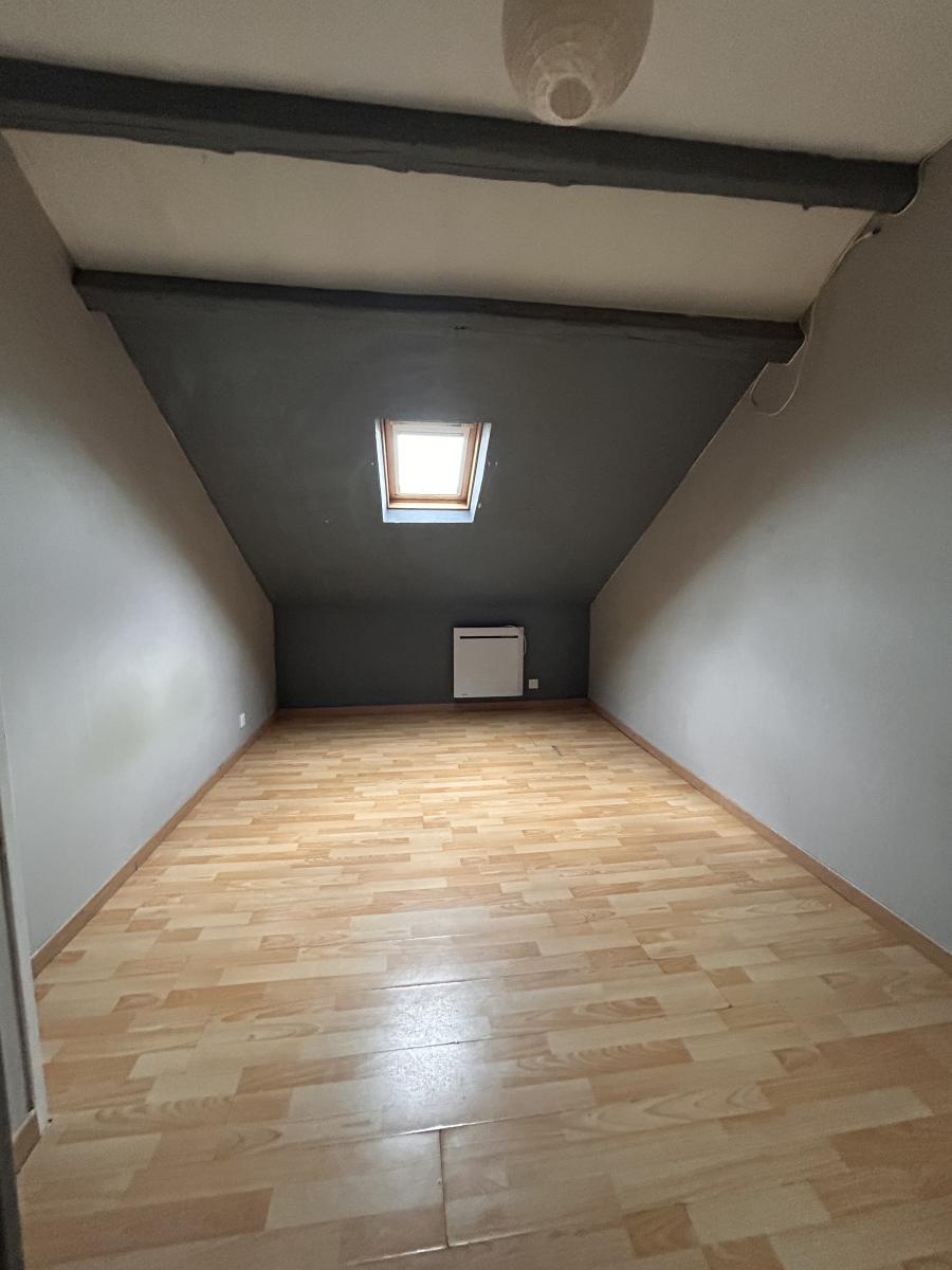 SANVIC EGLISE APPARTEMENT au 2ème étage sous combles - entrée, cuisine, séjour, deux chambres, salle de bains, wc, nombreux rangements. Chauffage électrique - Cave - jardin collectif - peu de charges 150,00 € / trimestre - Foncier 650,00 € . Rafraichissement à prévoir. Idéal primo accédant.