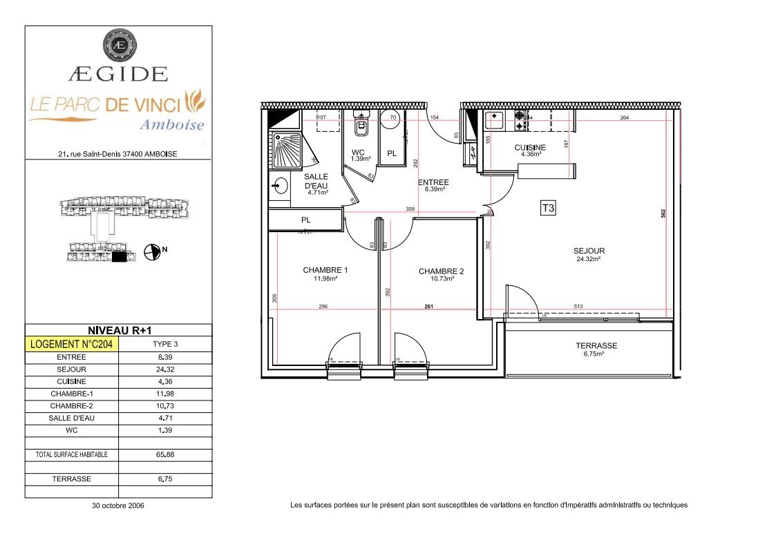 Surface : 65,88 m²