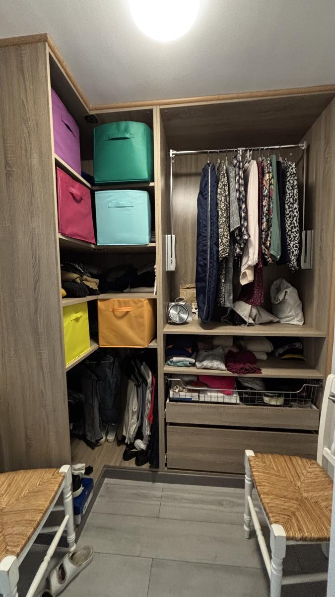 L’espace nuit comprend une chambre confortable avec dressing, une salle de bains et un WC indépendant. Possibilité de reconfigurer l'appartement en deux chambres.