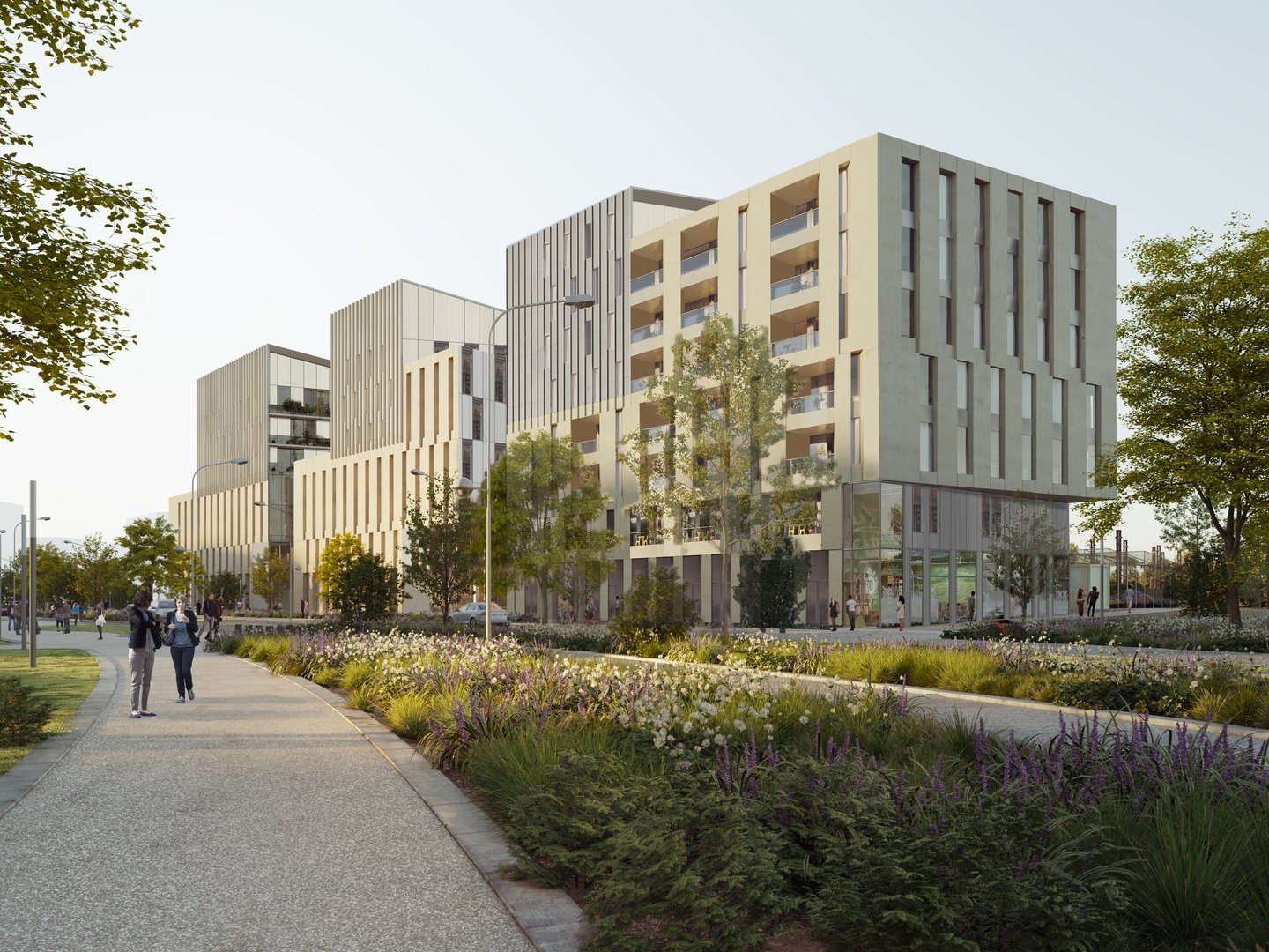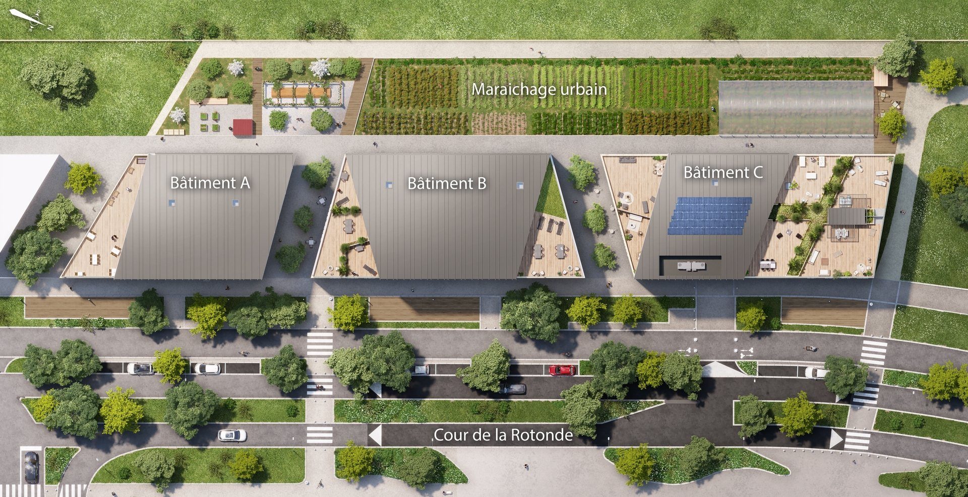 La résidence ANCORA, construite sur une nappe commune de stationnements foisonnés en sous sol, comprend 3 bâtiments (bureaux, commerces, pôle professionnel et pôle de coliving) ainsi qu'un bâtiment d'habitation et une zone de maraîchage urbain et bio.