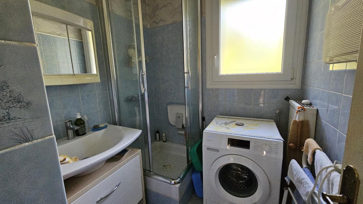 Le bien se compose d’une entrée avec dégagement et placards, d’une cuisine aménagée, d’un séjour, d’un salon, de deux chambres, d’une salle d’eau et de toilettes séparées.