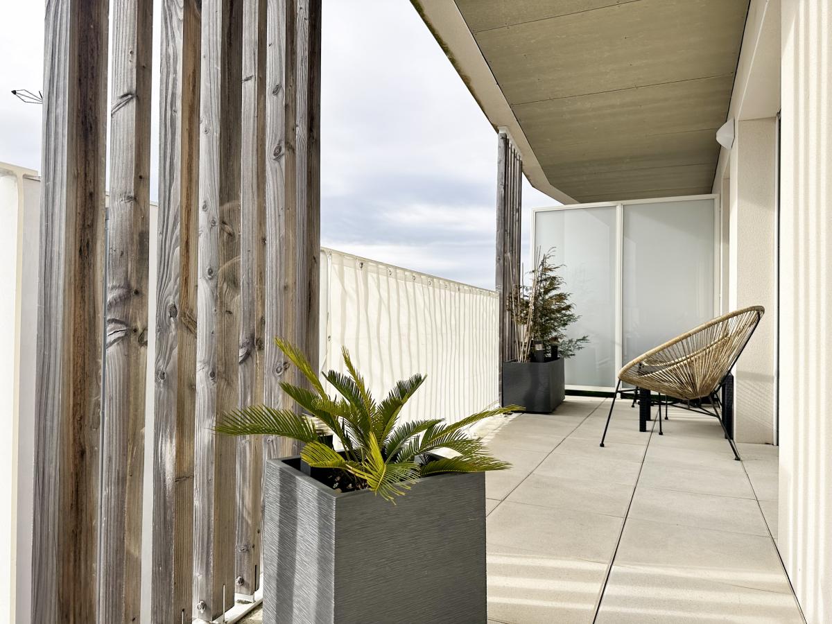 Une terrasse de 12m² idéalement exposée ainsi qu'une place de stationnement couverte et un local vélos commun viennent compléter ce bien.