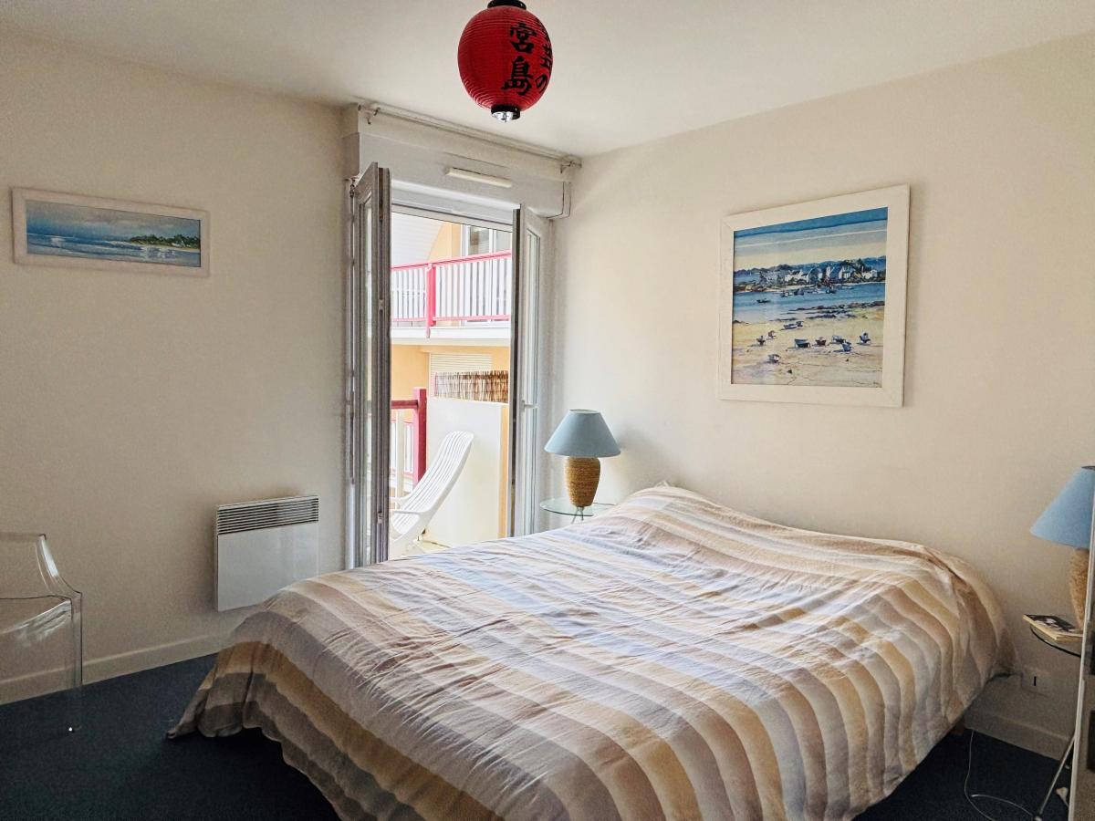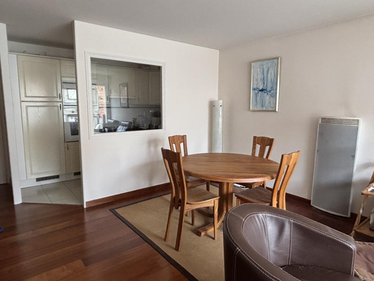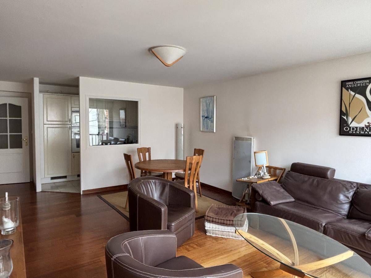 A proximité immédiate des commerces et de la plage, appartement 3 pièces de 68 m², situé au 2ème étage d'une résidence récente comprenant : une entrée, séjour avec balcon, cuisine équipée, 2 chambres avec balcon, salle de bains, WC.