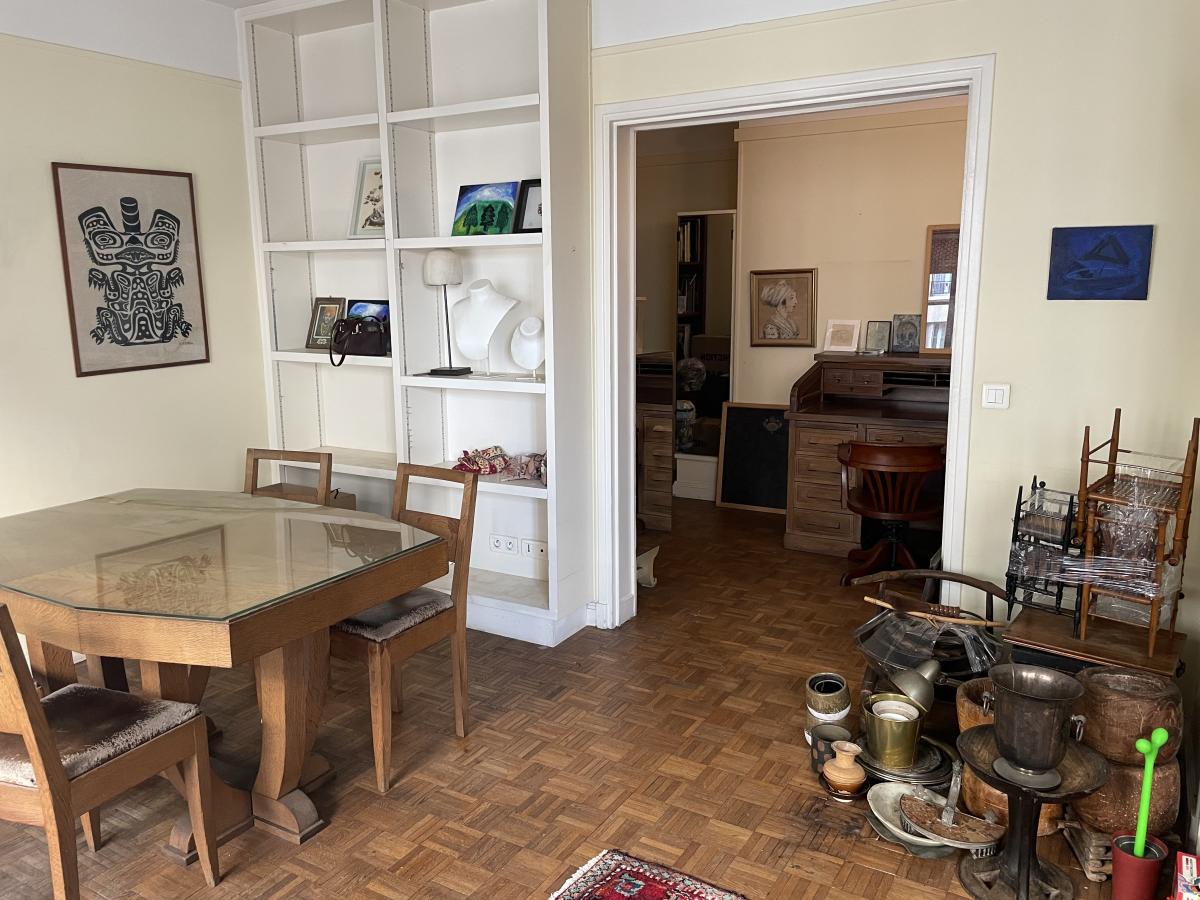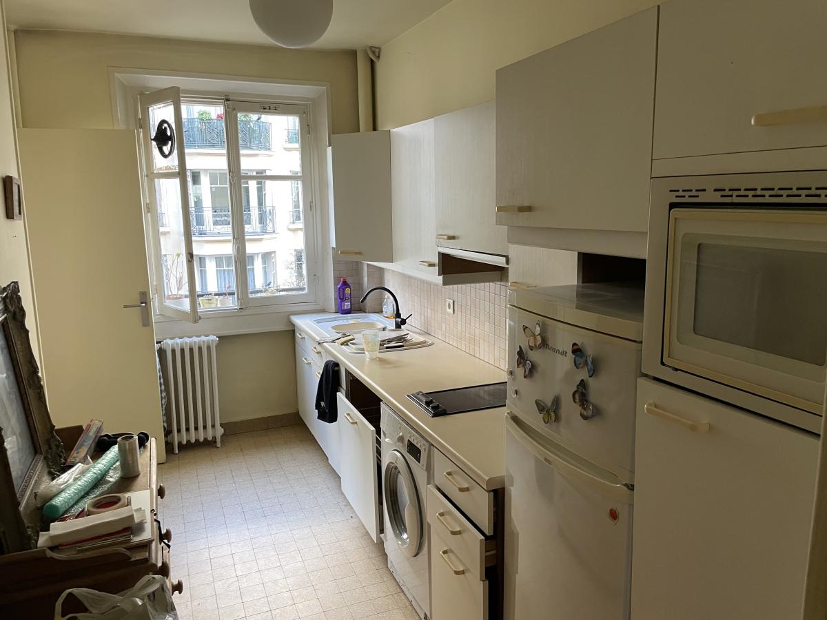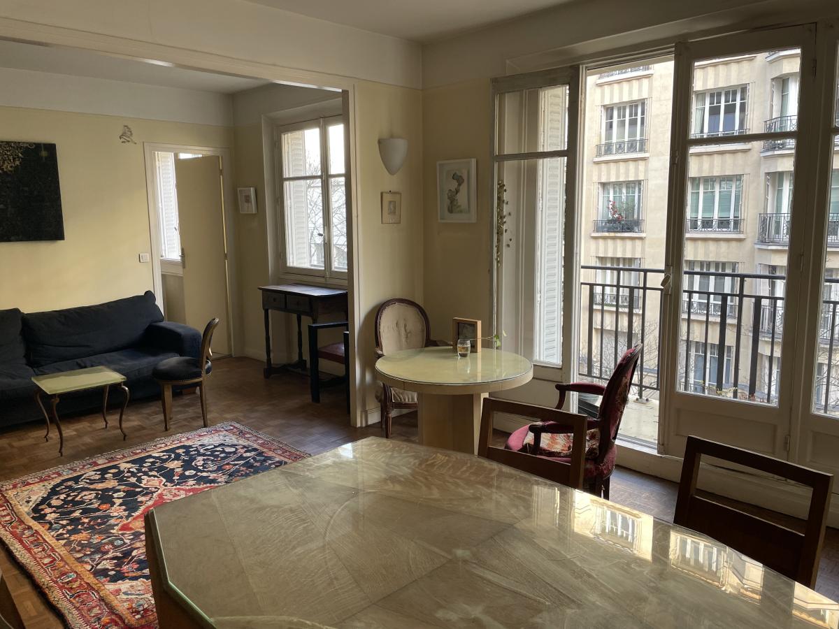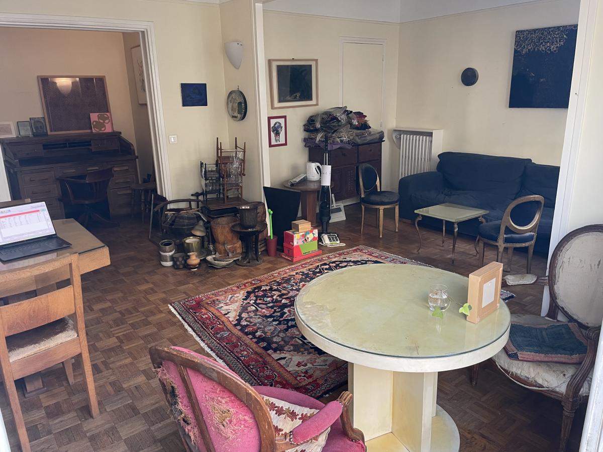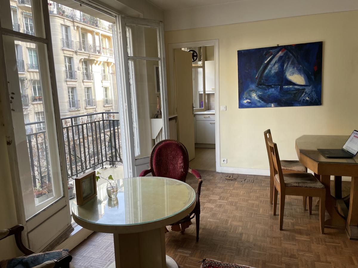 Paris 16, proche Porte de Saint-Cloud, dans un immeuble de 1950 de 9 étages avec concierge et ascenseurs, au 3è étage, un appartement de 3 pièces composé d’une grande entrée avec coin bureau, une cuisine (accès direct depuis l’entrée), une salle à manger, un salon (ou deuxième chambre) et une chambre. La salle à manger est ouverte sur le salon et donne accès à un large balcon par une double porte fenêtre. De l’entrée, un couloir mène à la salle de bains, à gauche un dressing et des water-closets séparés, à droite 2 portes, l’une vers le salon et l’autre vers la chambre depuis la salle de bains.