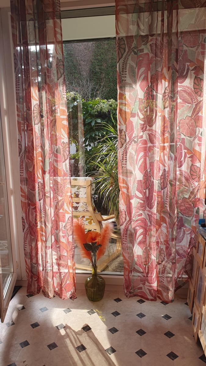 Entrée avec placard, séjour, cuisine ouverte, deux chambres, salle d'eau, WC,