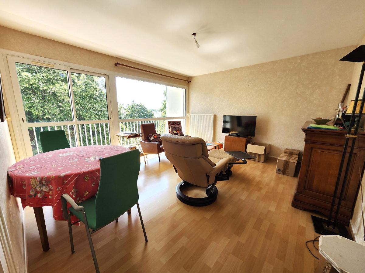 Saint Herblain Bourg - Au cœur du parc verdoyant des Résidences du Bourg face à la mairie, ce T3 exposé Sud et Est au 3e étage sans ascenseur d'un immeuble années 70 entièrement ravalé et isolé par l'extérieur comprend :