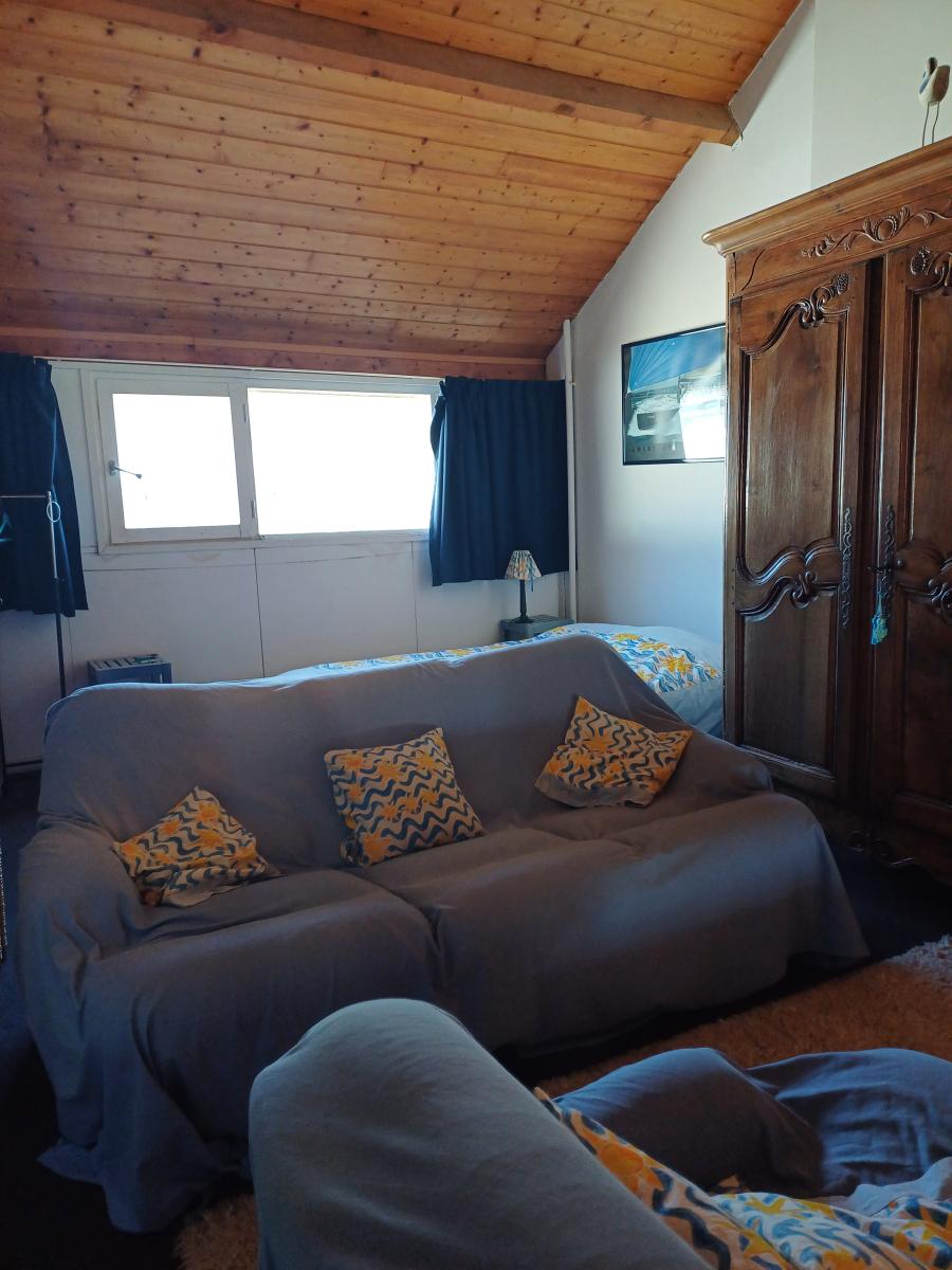 Une entrée sur la pièce de vie, un salon (face océan), une kitchenette, un wc, une salle de bains.