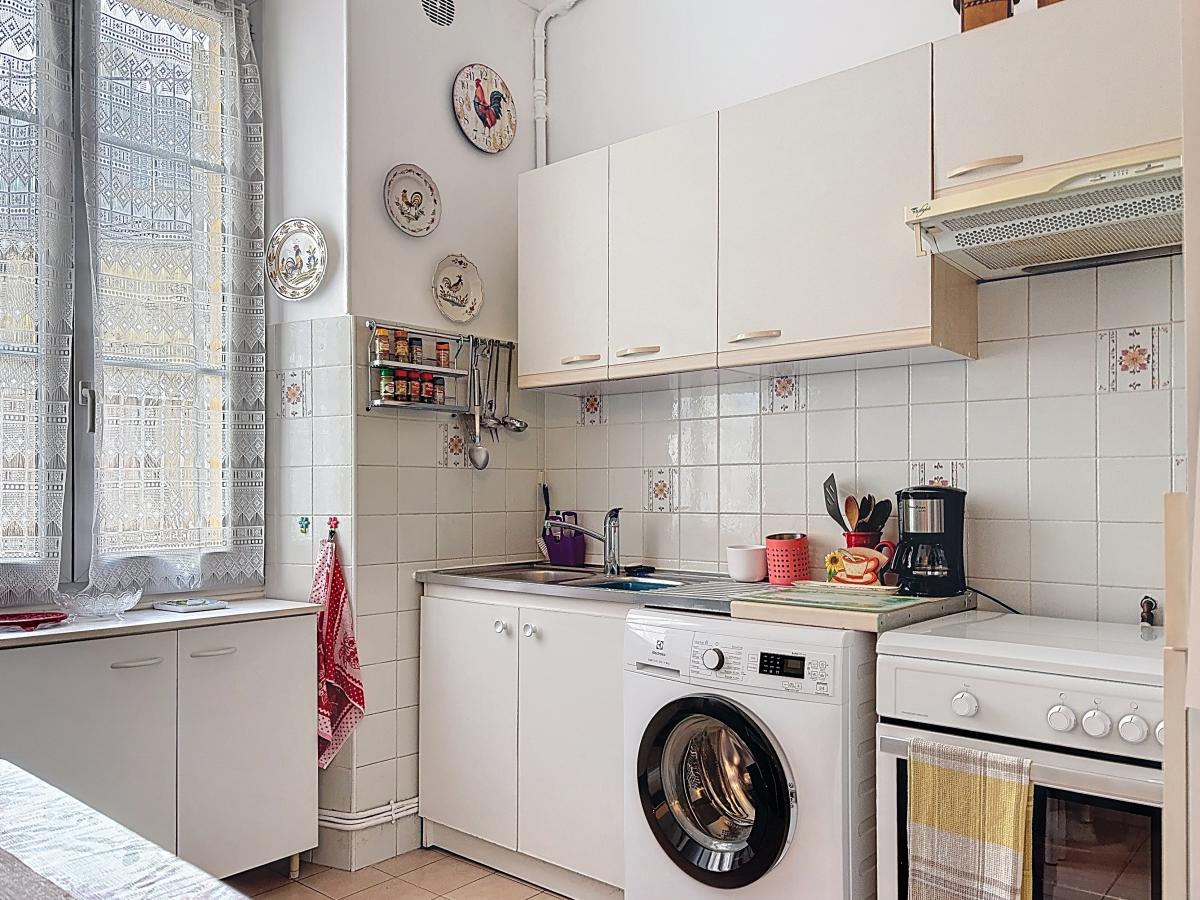 L'appartement est composé d'une entrée desservant une grande cuisine indépendante , un séjour , deux chambres , une salle d'eau , un wc indépendant ainsi que deux débarras faisant office de dressings.