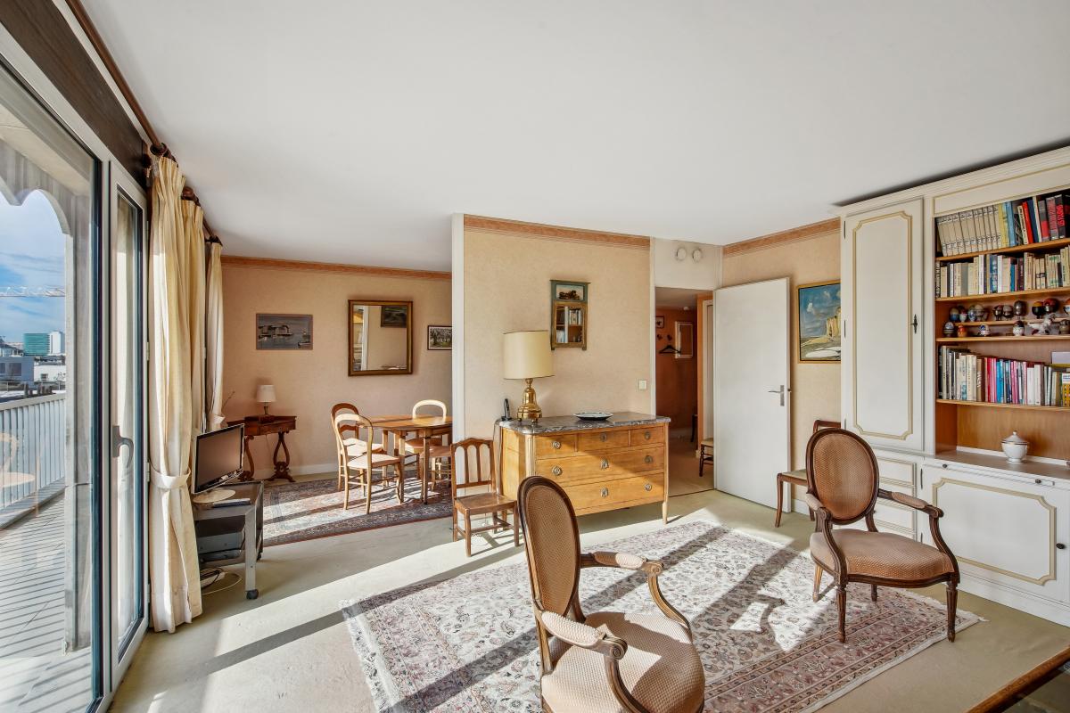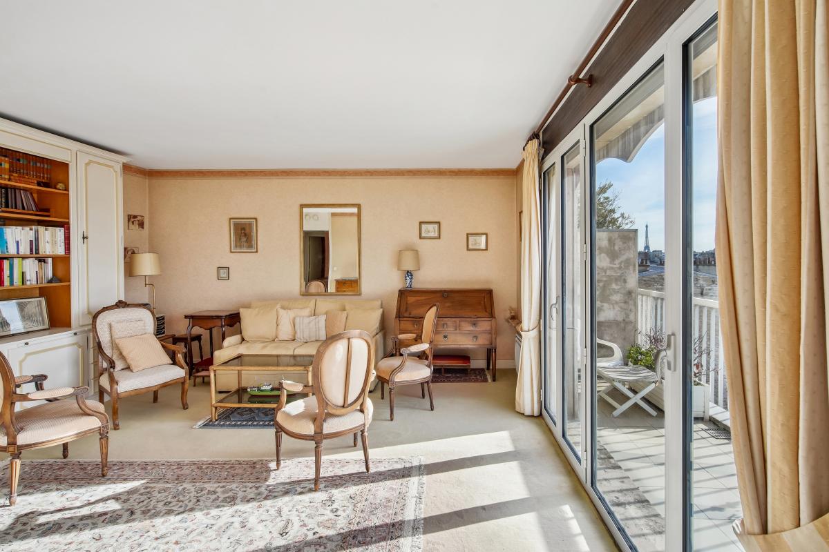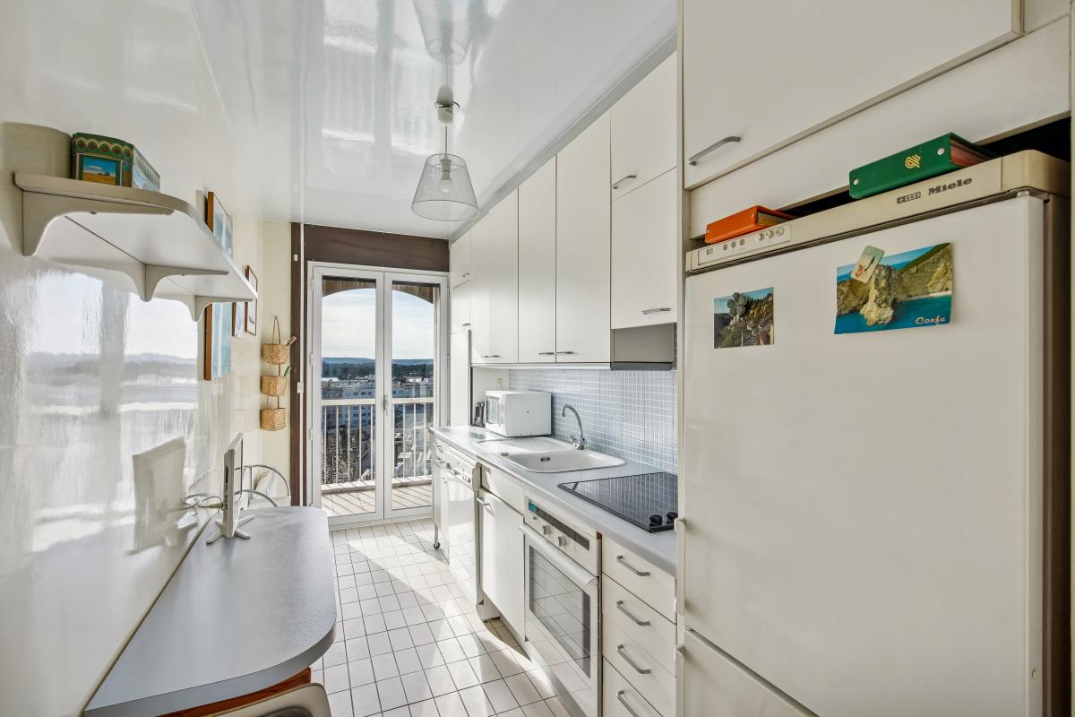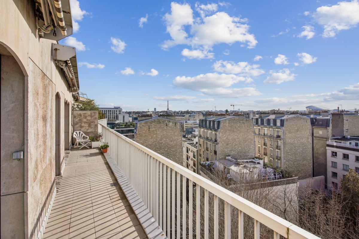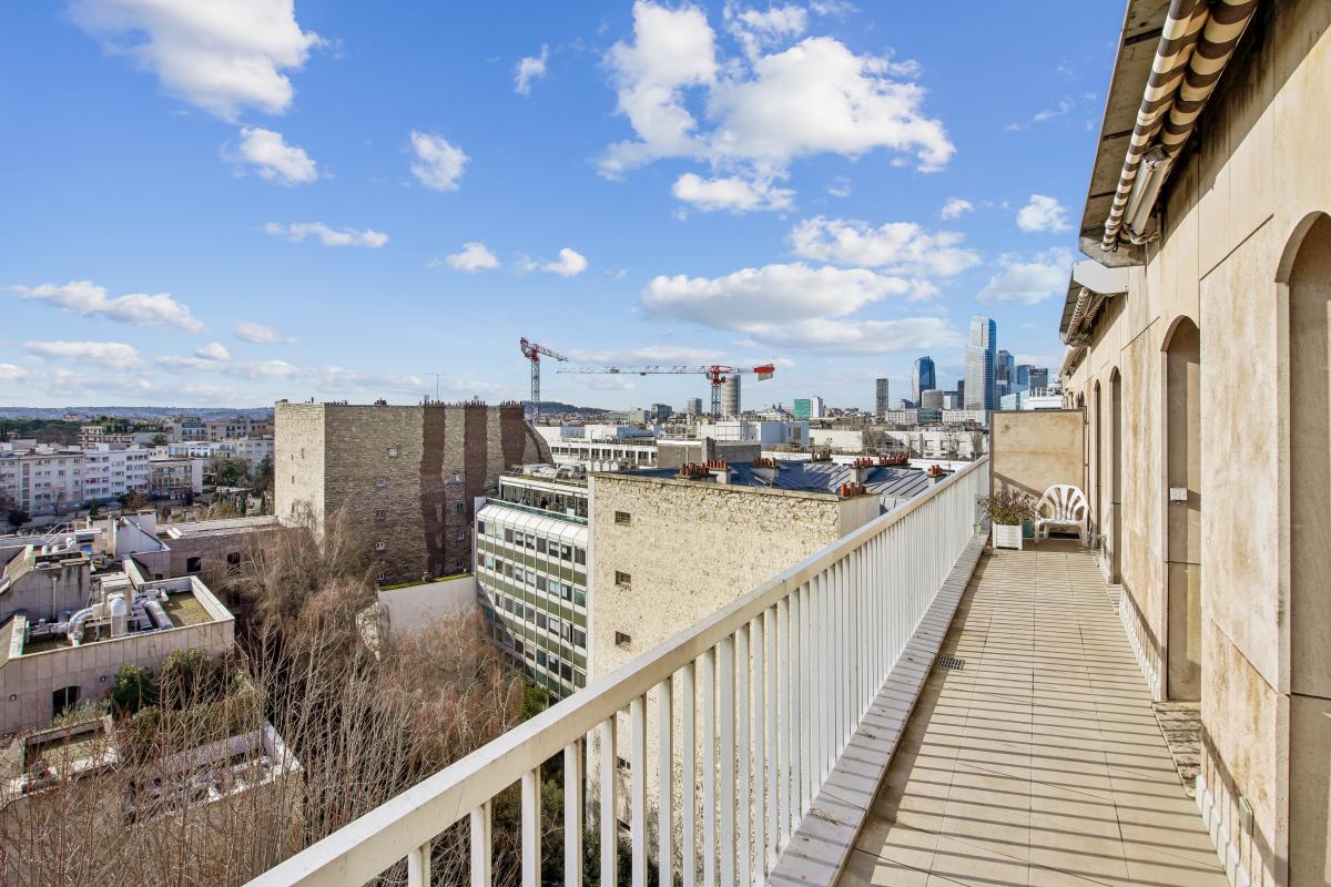 Avenue Charles de Gaulle coté Bois de Boulogne, au pied des commerces et de la ligne 1, un appartement de 70,6m² en dernier étage au calme plein Sud avec son balcon terrasse de 15m² et sa vue sur le bois de Boulogne, la Tour Eiffel et la Skyline de la Défense. Ce bien au 8ème et dernier étage avec deux ascenseurs d'une copropriété années 80 de bonne facture avec gardien bénéficie d'un balcon terrasse de plain-pied donnant sur le bois de Boulogne et la fondation Louis Vuitton. Il bénéficie d'un superbe ensoleillement toute la journée. Doté d'un plan en étoile très adaptable il se compose de : une entrée avec vestiaire et toilettes invités distribue en étoile : un double séjour et sa baie vitrée de plain pied sur le balcon terrasse , une salle a manger ouverte sur le séjour donnant également sur le balcon, une cuisine séparée et donnant également par une porte fenêtre sur le balcon, une belle chambre sur balcon et sa salle de bains. Possibilité d'adapter le bien en deux chambres.