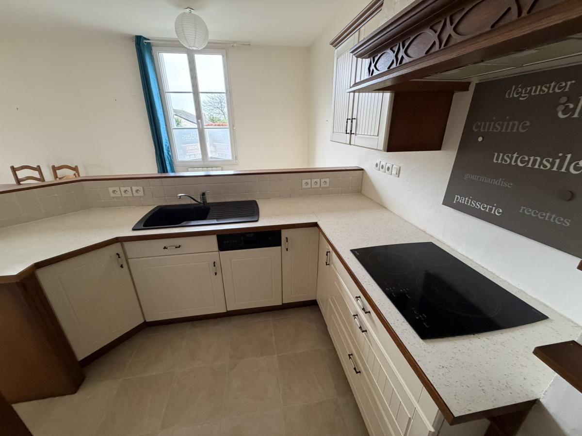 Barneville, en centre bourg, appartement en rez de chaussée comprenant : grand séjour avec cuisine ouverte équipée, arrière-cuisine/buanderie avec placard, deux chambres dont une avec placard, salle de bains, WC avec lave-mains.