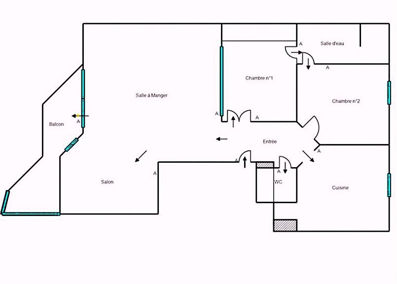 Au 1ème étage d'un immeuble en copropriété (avec ascenseur) - APPARTEMENT T3 de 71.84m² composé de : entrée, double séjour de 32m² donnant sur un balcon Sud, cuisine aménagée avec espace repas, espace bureau/chambre avec placard, chambre avec salle de douche attenante. WC séparés