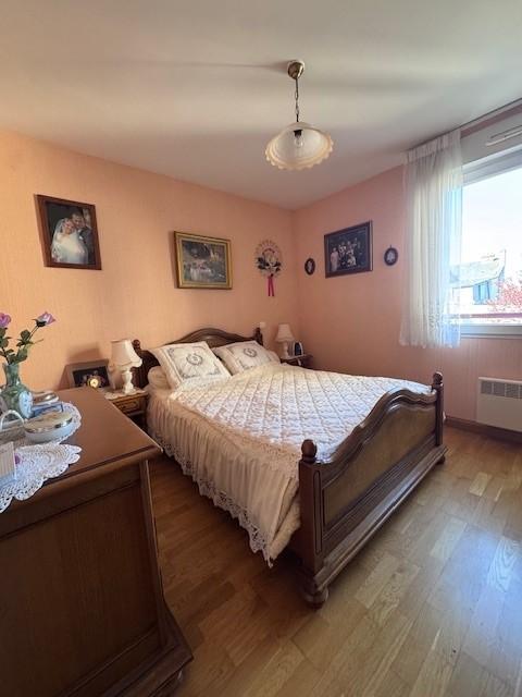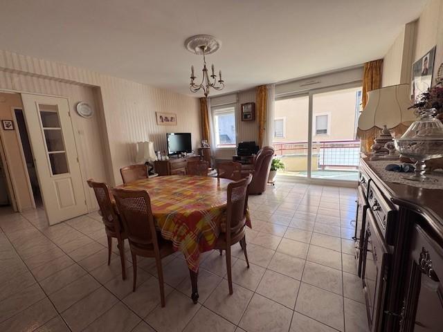 un appartement situé au premier étage, comprenant une entrée, un séjour avec balcon, un dégagement, une cuisine, un cellier, un w.c, deux chambres, salle de bains et placards.
