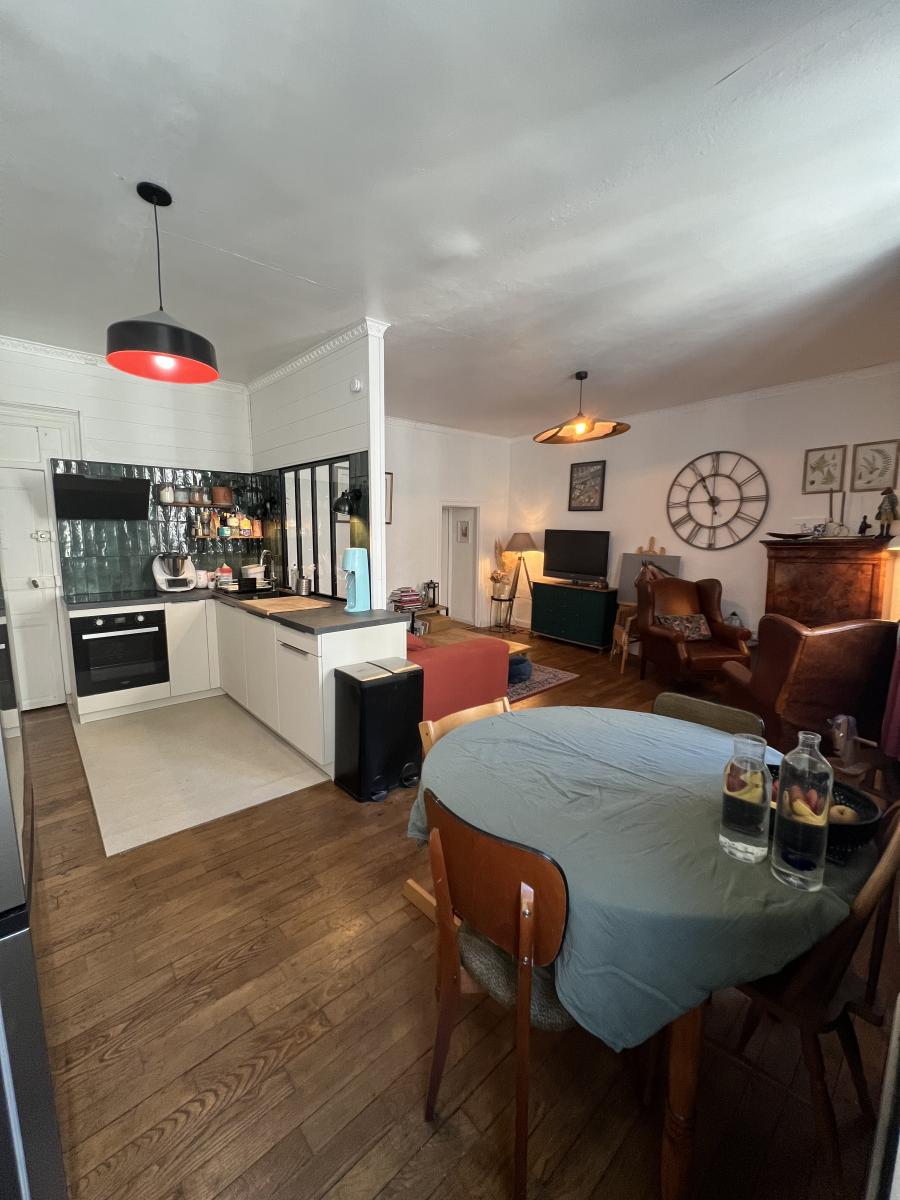 Cuisine aménagée et équipée refaite en 2024. Une chambre de 14m² avec placard.