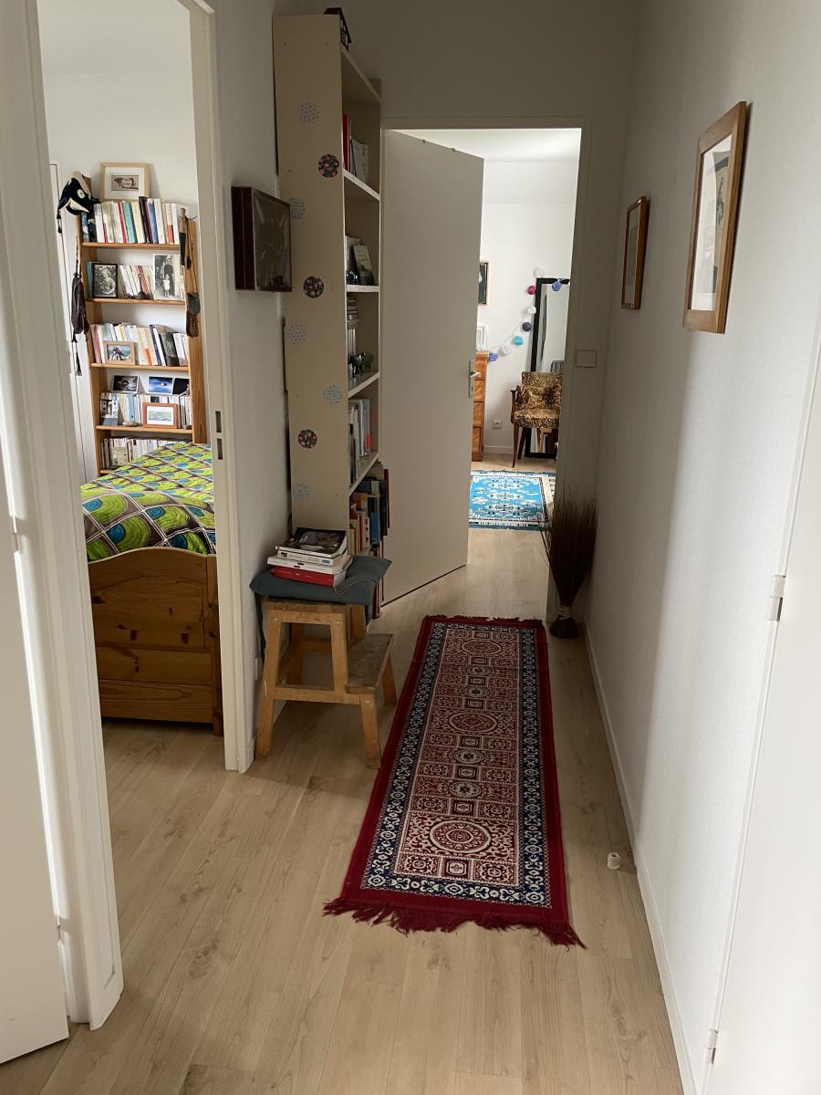 Entrée avec placard, séjour/salon avec balcon exposé Sud, sans vis à vis, vue sur jardin, cuisine aménagée/équipée, 2 chambres avec rangement, salle de bains, wc avec lave-mains