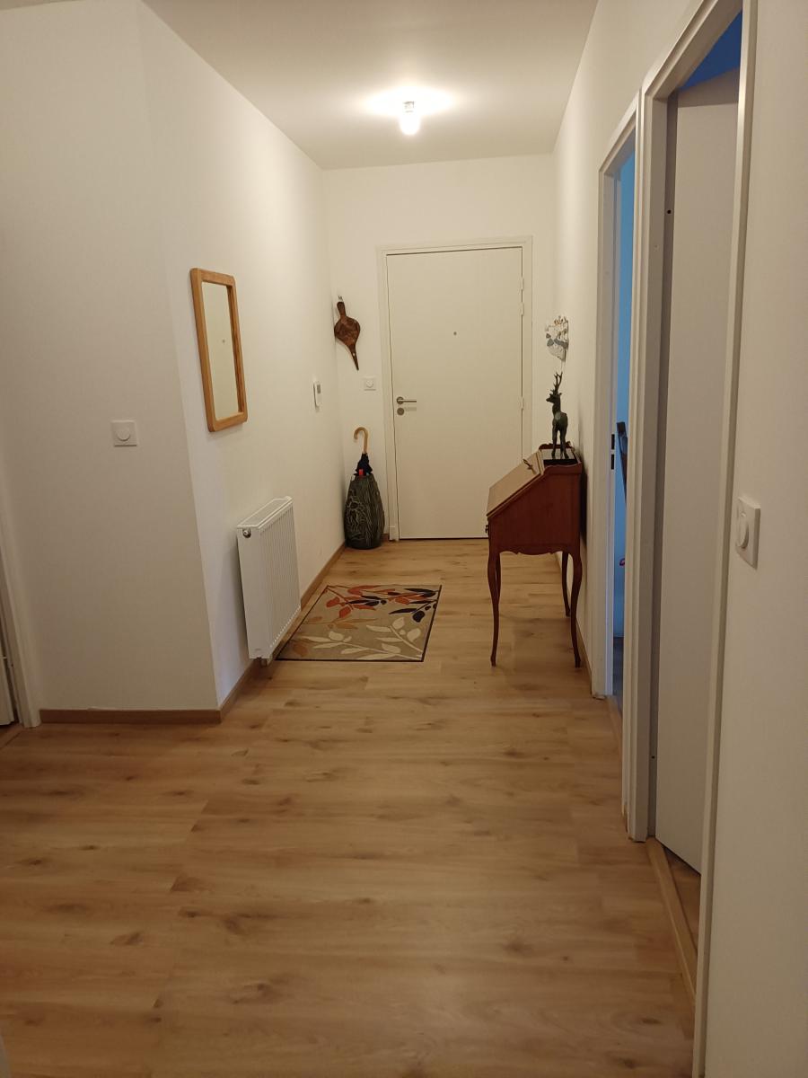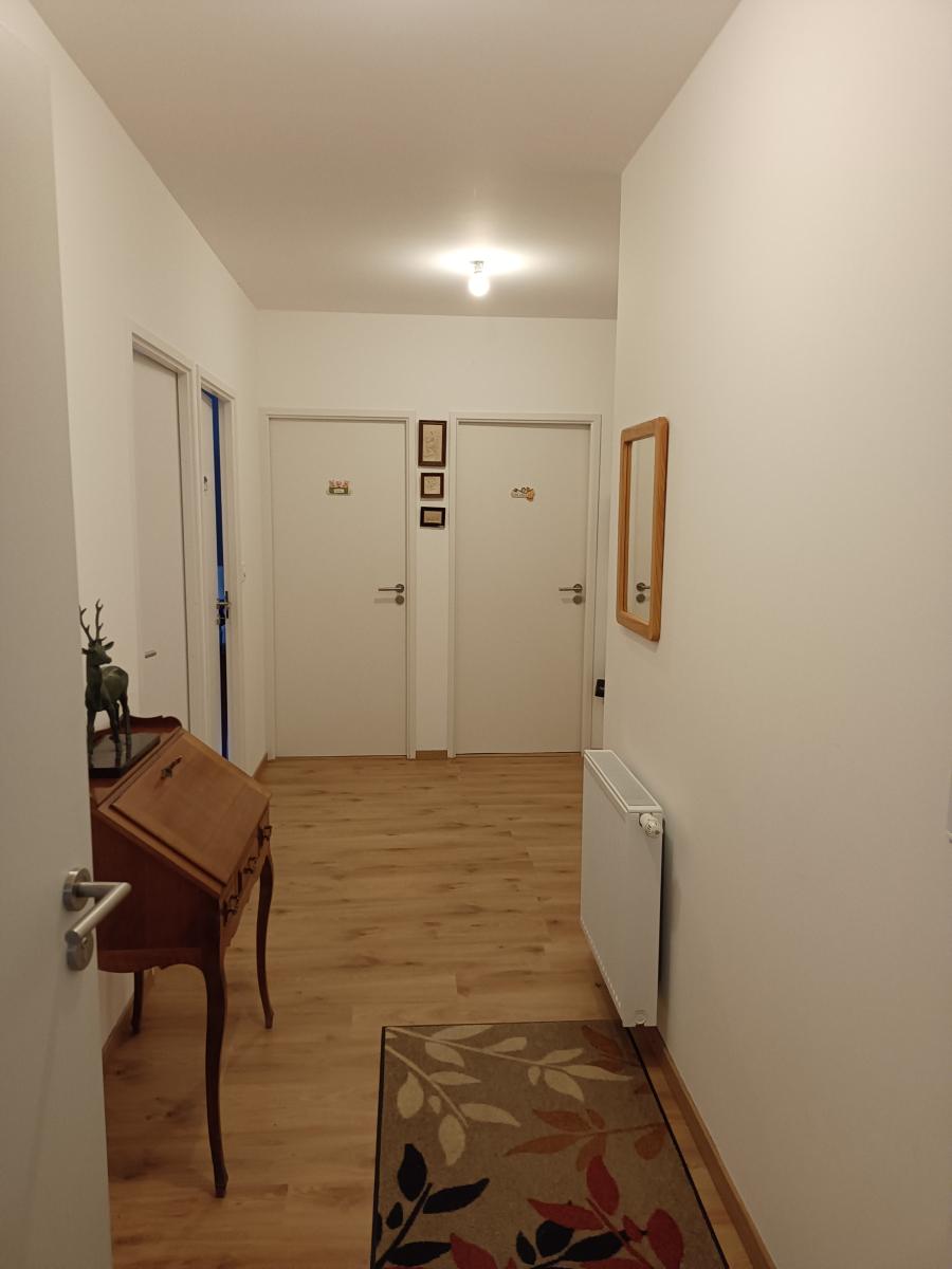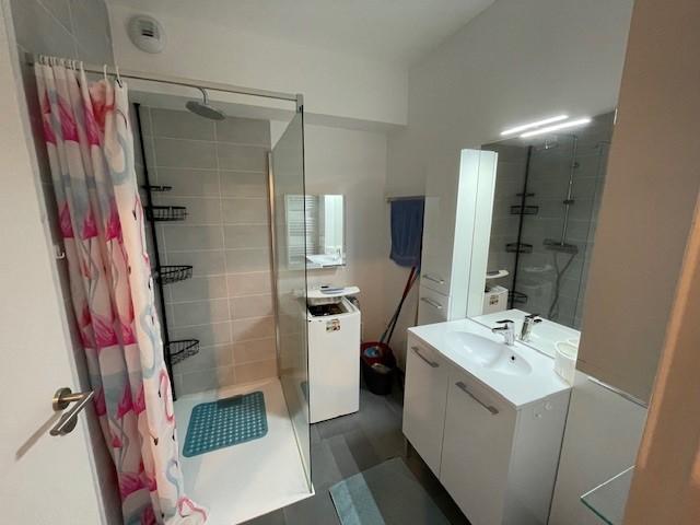 - entrée, salon salle à manger avec coin cuisine équipée, deux chambres, salle de bains avec douche, wc ;