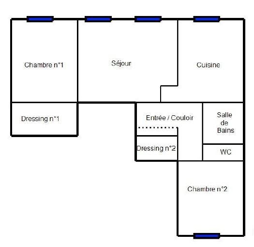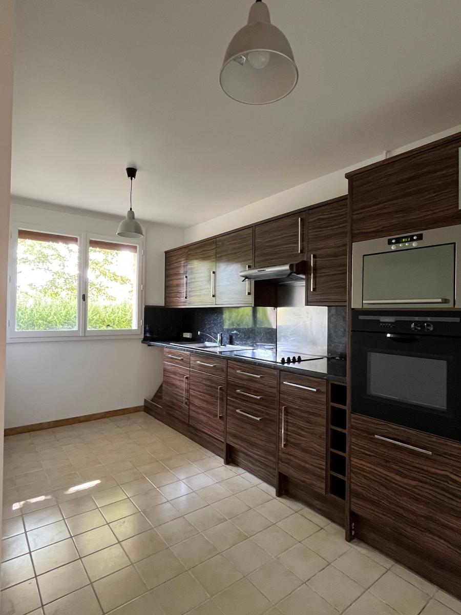Appartement de type F4 au rez-de-chaussée comprenant : entrée, avec placard, salon salle - manger, cuisine séparée équipée, deux chambres dont une avec grand dressing, salle de bains, et un coin bureau indépendant.