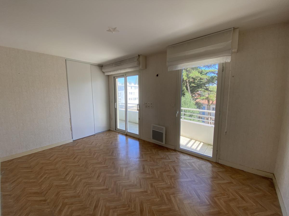 Face mer, proche allée Cavalière et Aquabaule, appartement de type 3 (d'environ 80m²)situé au premier étage d'une copropriété de standing (construite dans les années 2000).