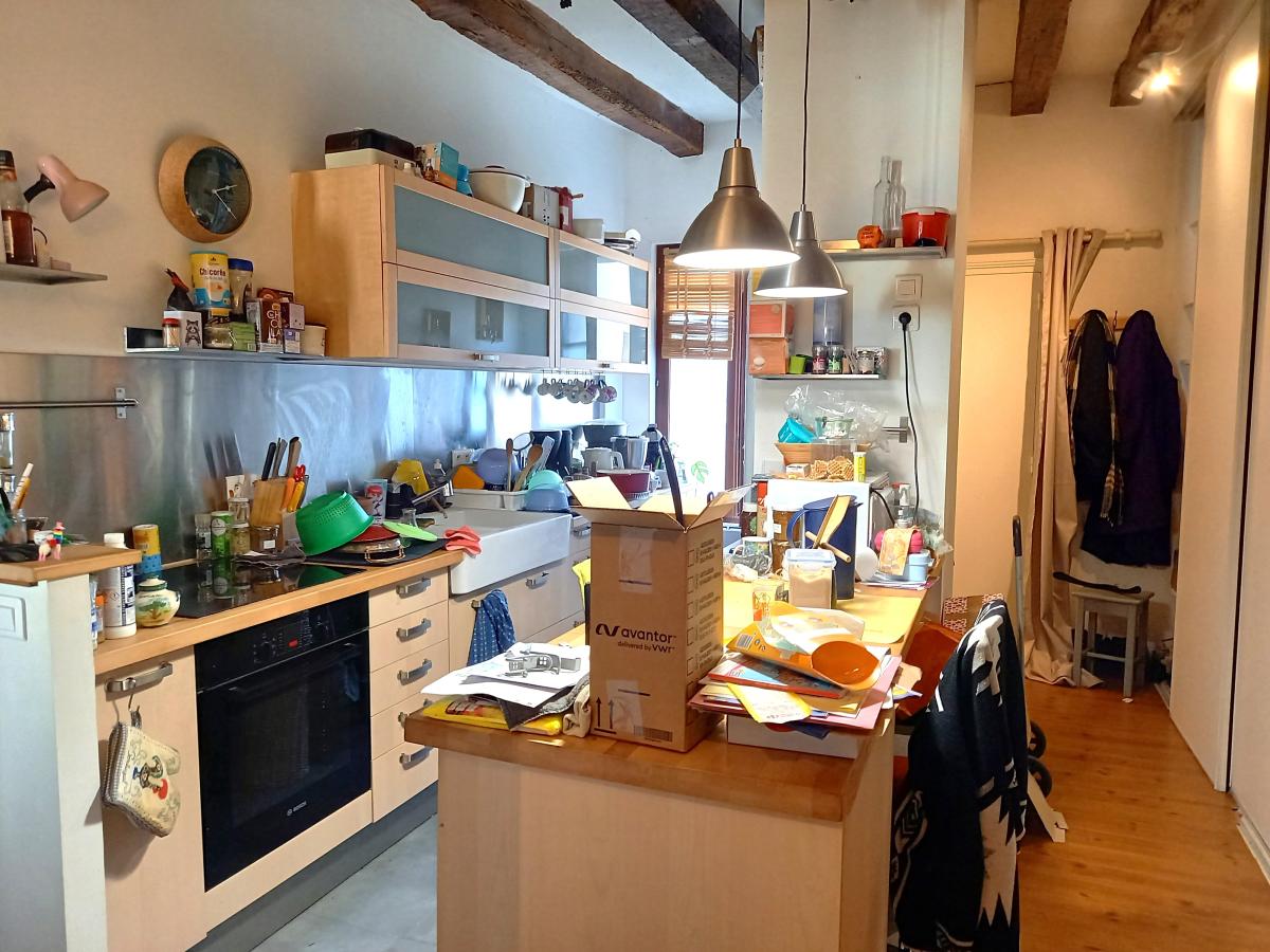 TOURS HALLES- Dans bel immeuble ancien en tuffeau -T3 - 80m2 carrez- 2/3 sans ascenseur dans petite copropriété comprenant entrée avec rangements - cuisine E/A ouverte sur séjour - 2 chambres- salle d'eau wc
