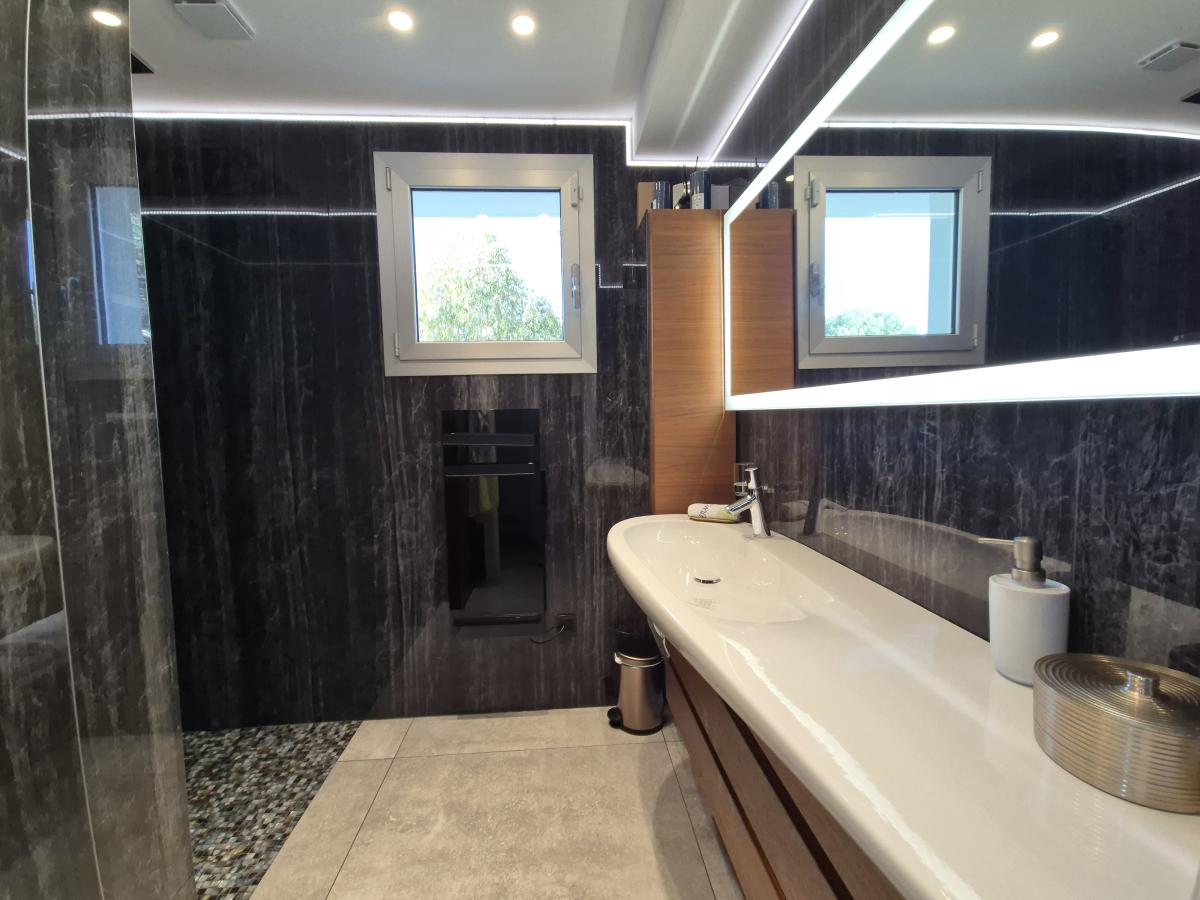 La partie nuit comprend deux chambres, chacune disposant de sa salle d’eau avec toilettes, garantissant confort et indépendance.
