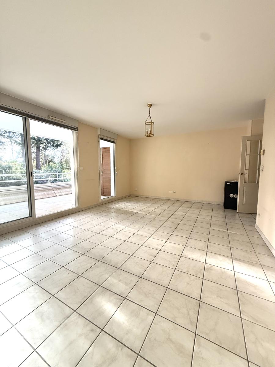 Il comprend un hall d’entrée avec placard, un WC indépendant avec lave-mains, un dégagement, deux chambres avec placard, une salle de bains, une cuisine et un séjour ouvrant sur une terrasse de 14,78 m² avec vue sur le parc d’Aiguelongue. La résidence dispose d’un parc arboré et d’une piscine.
