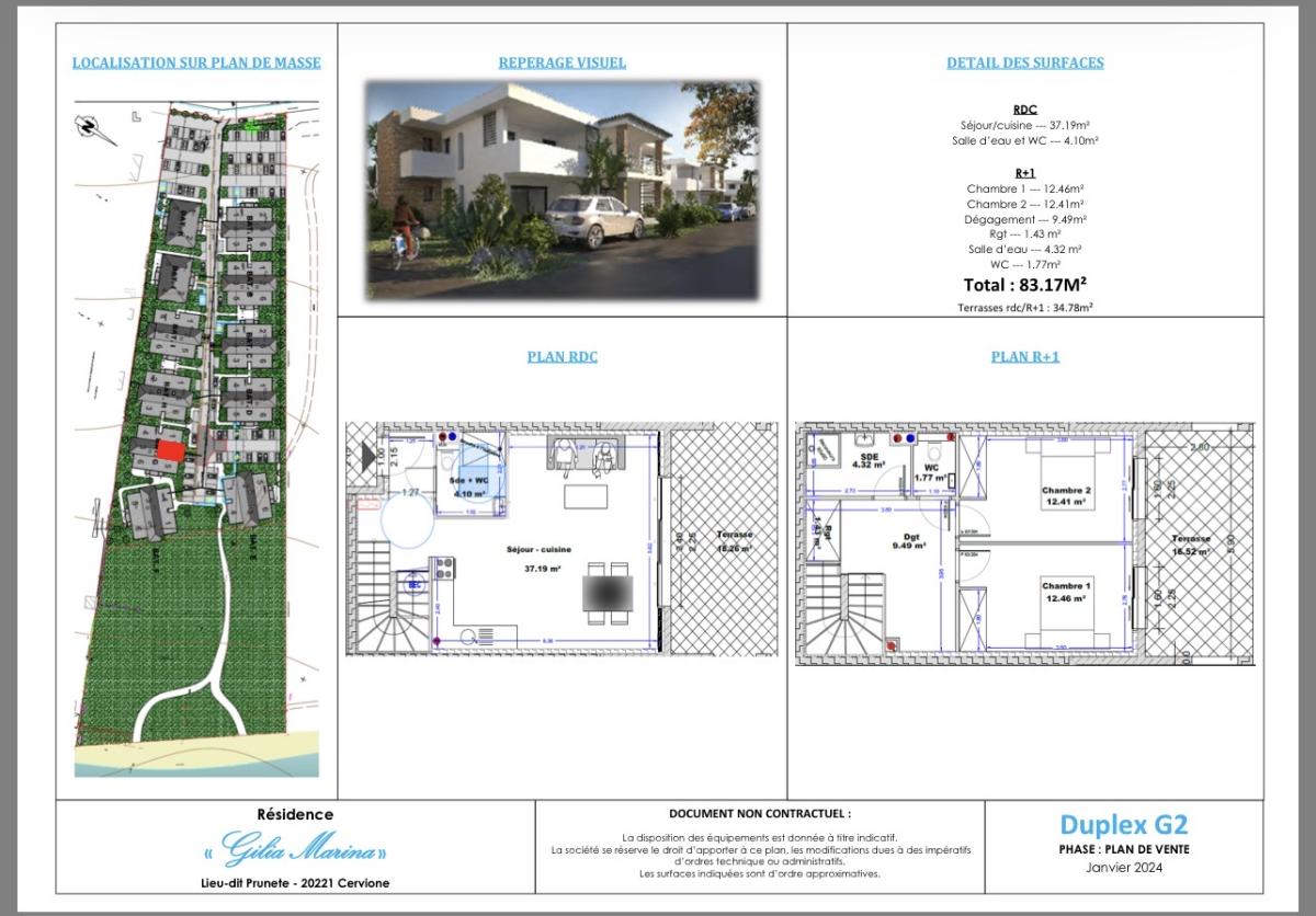 Neuf et en bord de plage. Duplex de type 3 d'une SH de 83,17m2 vendu sur plan. Il se situe à Cervione, entre mer et montagne, à une heure de Bastia et 30 mn de l'aéroport de Poretto, dans une petite résidence parfaitement intégrée. Exceptionnel, la résidence bénéficie d'un accès piéton à la plage tout en étant à proximité de toutes commodités. Il se compose en RDC d'une cuisine ouverte sur le séjour de 37,19m2 et à l'étage de deux chambres avec salle d'eau et w-c. Il bénéficie également de deux belles terrasses de 34,78m2 en tout et de deux places de stationnement. Dossier complet et visite virtuelle sur https://gilia-marina.com