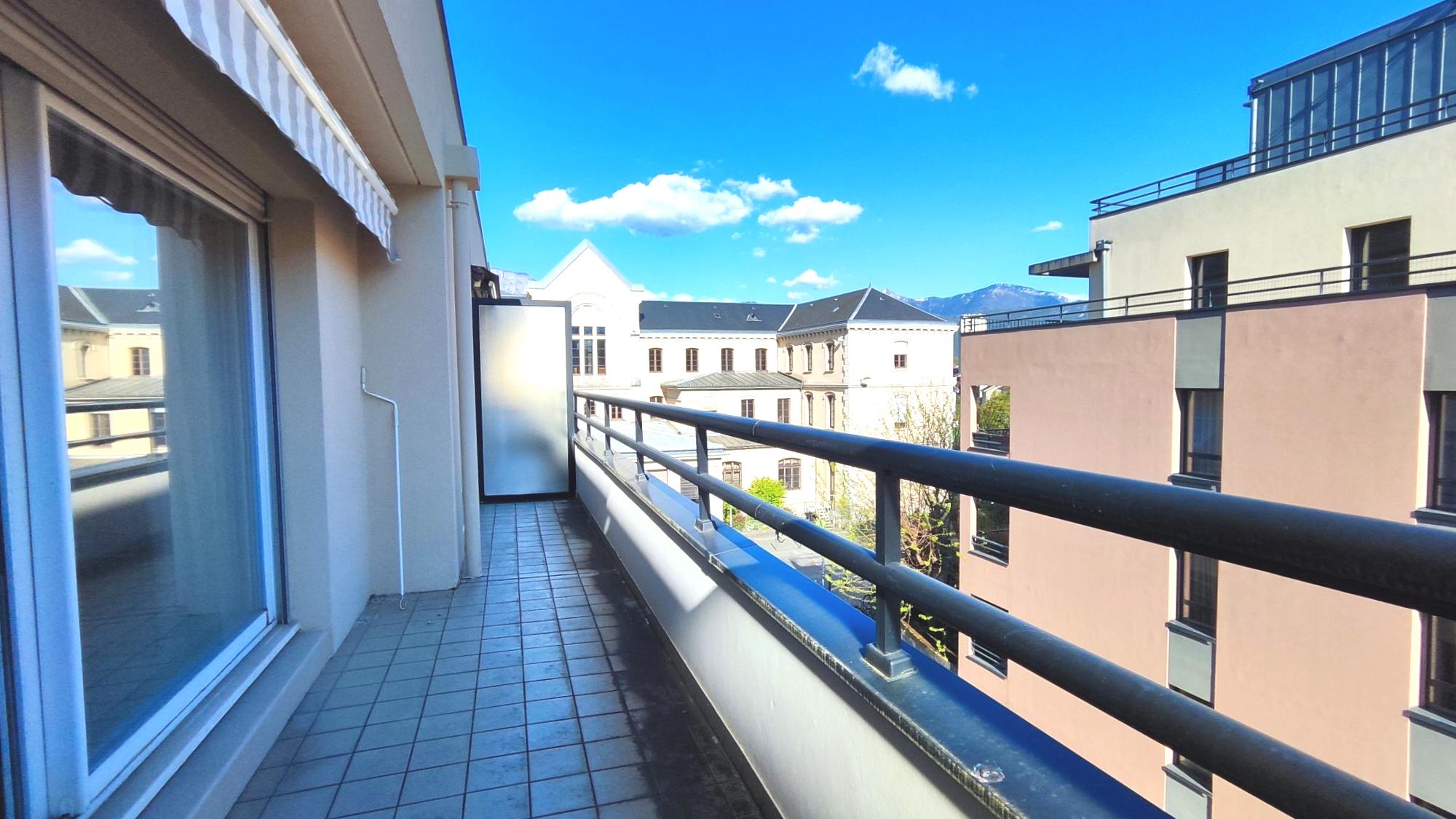 Le séjour de plus de 30 m² ouvre sur une terrasse de 12 m², idéale pour profiter d’un espace extérieur en plein centre-ville.