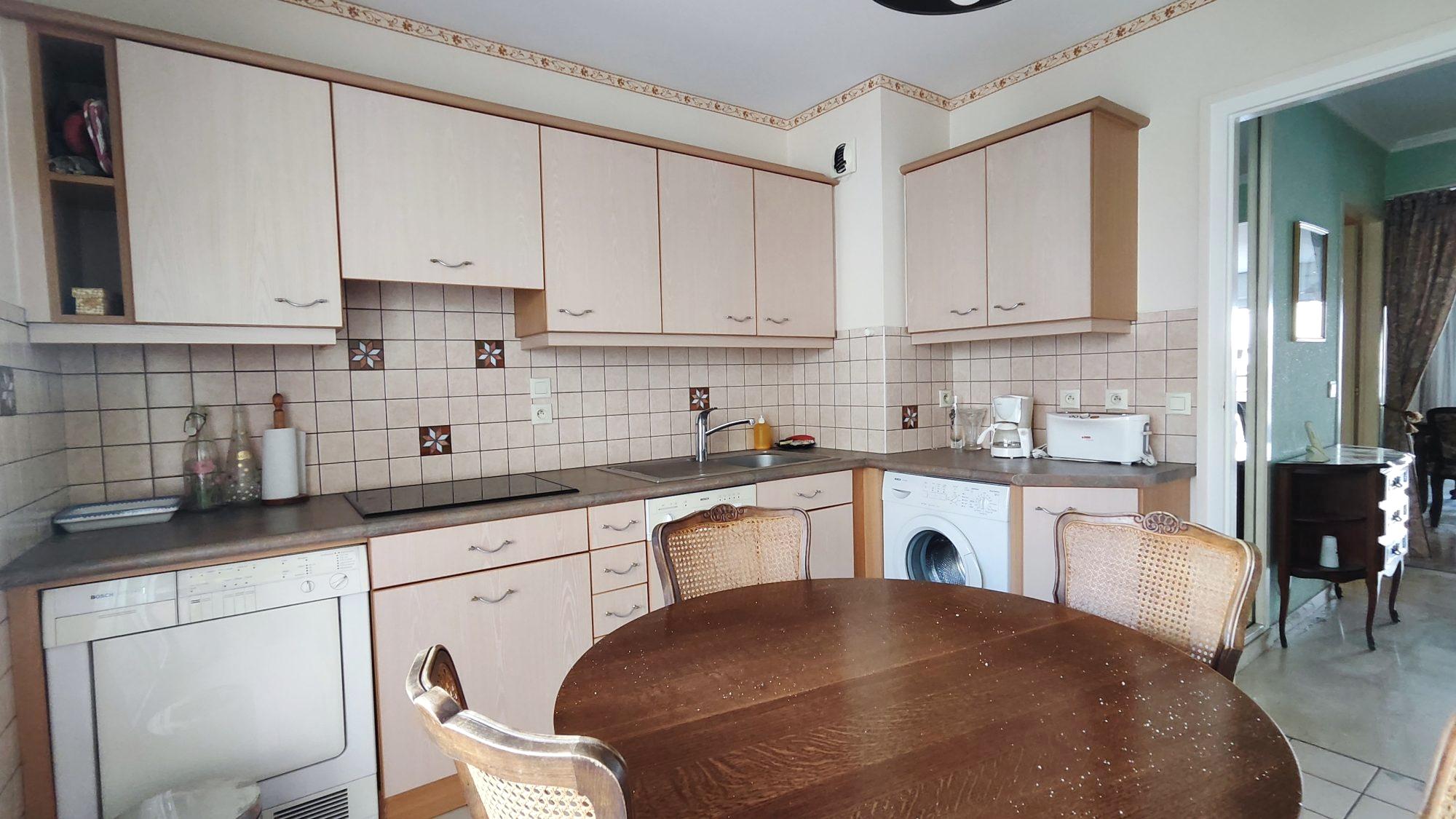 La cuisine indépendante, aménagée et équipée, bénéficie également d’un balcon.
