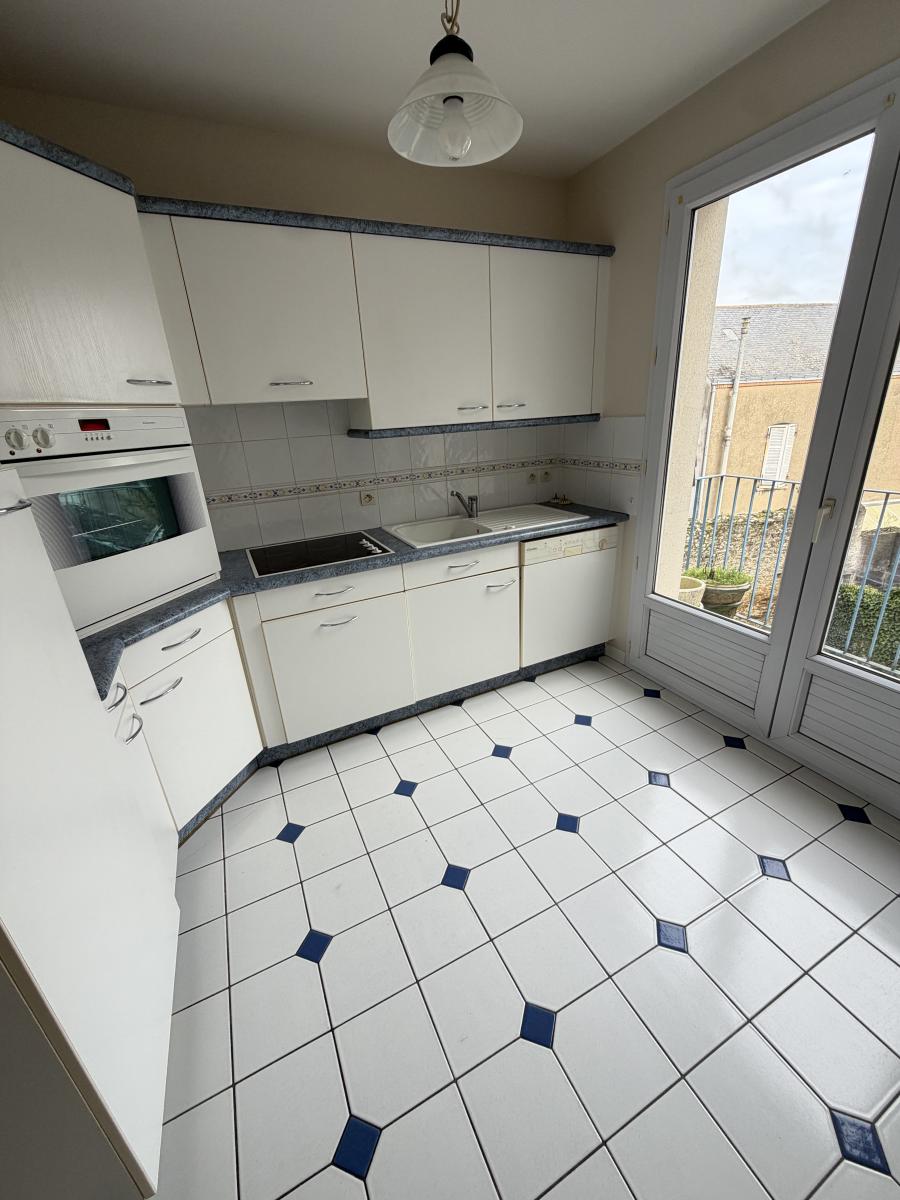 CHOLET, en hyper-centre, appartement situé au 3ᵉ et dernier étage avec ascenseur, comprenant un hall d’entrée, un séjour sur parquet ouvrant sur un balcon, une cuisine indépendante avec balcon, un couloir desservant deux chambres, une salle d’eau et un WC indépendant.