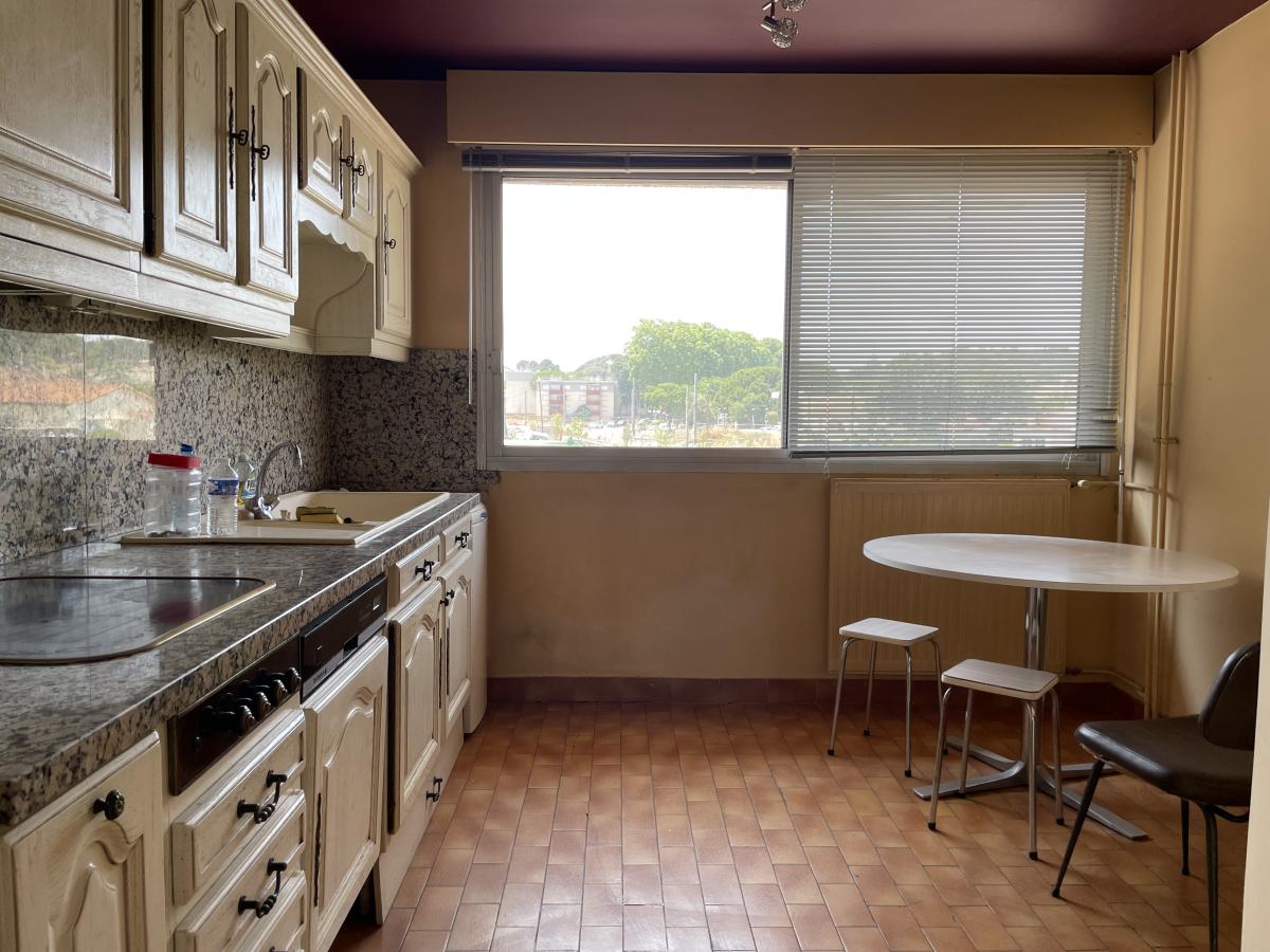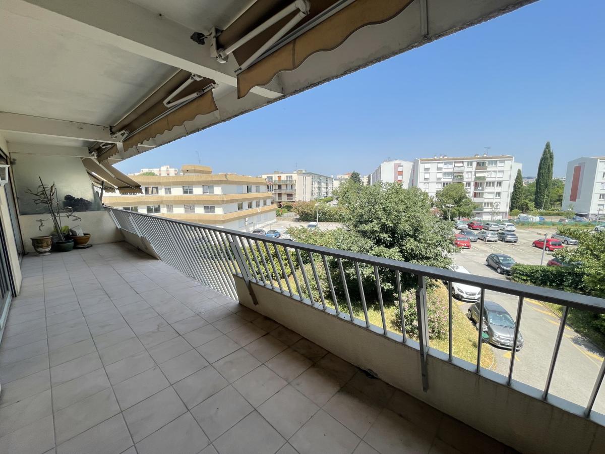 Résidence "Les Collines d'Estanove", appartement T3 au second étage avec ascenseur comprenant une entrée, un salon/séjour donnant sur une terrasse exposée EST, une cuisine, deux chambres, un dressing, une salle d'eau, un WC séparé, une cave et un garage. Fenêtres simple vitrage aluminium, volets roulants. Immeuble en copropriété (769 lots), montant des charges de copropriété trimestrielles: 950€. Résidence avec court de tennis et piscine.