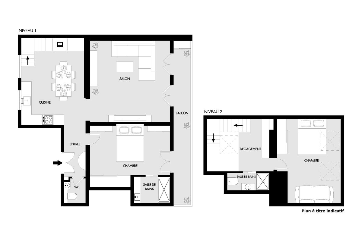 Appartement de 3 pièces en duplex avec ascenseur aux derniers étages au sein d'un immeuble haussmannien de grand standing, proche des métros Argentine et Victor Hugo.